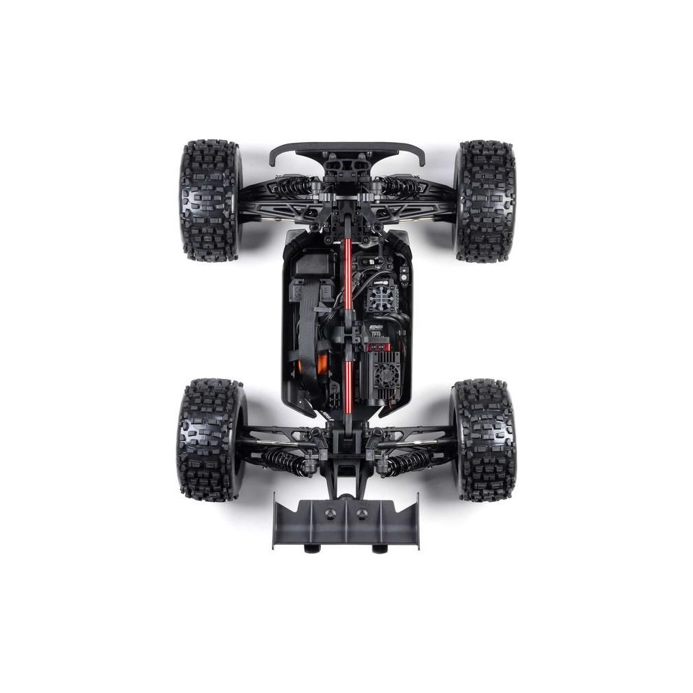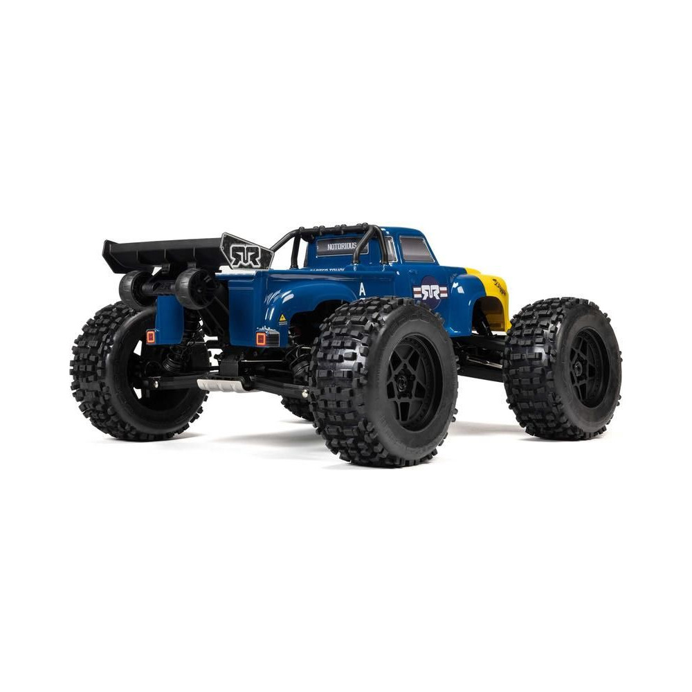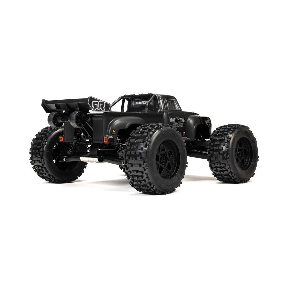 Az Arrma Notorious 6S BLX 1:8 méretarányú távirányítós modellautó új V6-os változata , amely lenyűgöző sebességét és erejét a következő szintre emeli, és kulcsfontosságú fejlesztéseket tartalmaz a tartósság érdekében. Ennek köszönhetően még jobb és merészebb mutatványokat hajthatsz végre , a modell erre készült a rövid tengelytávnak köszönhetően. A féktelen vezetés érdekében nagy szilárdságú EXB (Extreme Bash) alkatrészeket szereltek be . Az extra erős AC motor lehetővé teszi a modell számára, hogy akár 96 km/h sebességet is elérjen. Komplett elektronika beépítve egy új Spektrum Firma V2 szabályozóval, egy fém fogaskerekes szervóval és egy vevővel. A kiváló vezetési tulajdonságokat aszfalton és terepen a független felfüggesztés és a differenciálművekkel ellátott, hangolt 4x4-es hajtás garantálja. A második világháborús repülőgépek ihlette retró megjelenésű test stoplik nélküli a gyors és egyszerű összeszerelés és szétszerelés, valamint a stoplik nélküli tiszta vonalak érdekében.