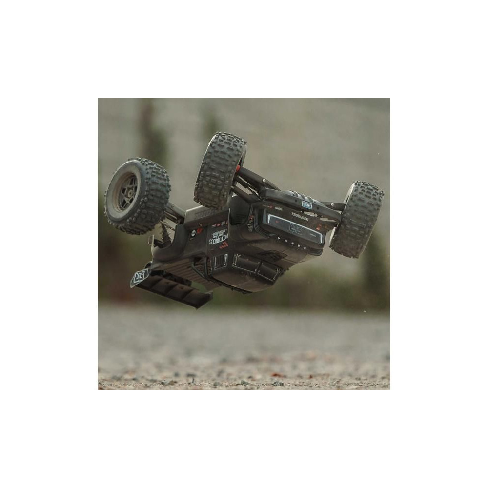 Arrma Notorious 6S BLX 1:8 RC autómodell 4WD meghajtással és rövid tengelytávval mutatványokhoz , AC motorral felszerelve, akár 96 km/h sebességgel! Spektrum vezérlő telemetriai támogatással és intelligens funkciókkal. Alumínium alváz és egyéb EXB alkatrészek a maximális tartósság érdekében. Spektrum SLT3 adó.
