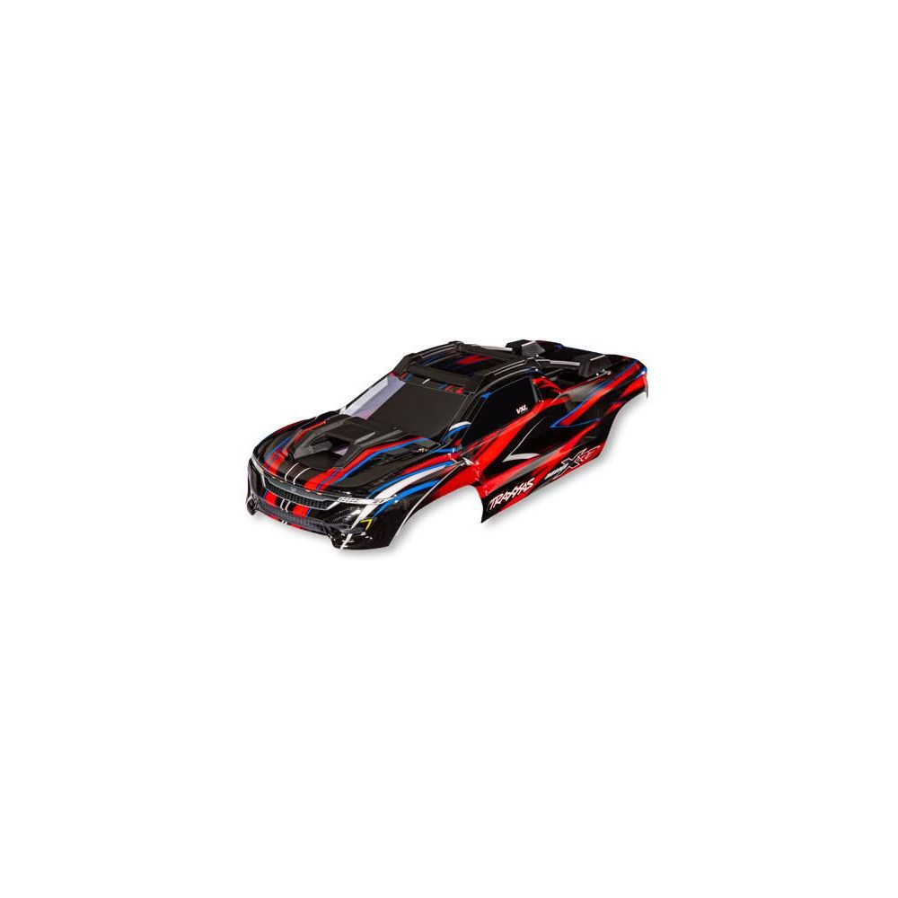 Traxxas Mini XRT test piros. Befejezetten festett karosszéria, felhelyezett matricák, beleértve a rögzítőelemeket a patentek nélkül.
