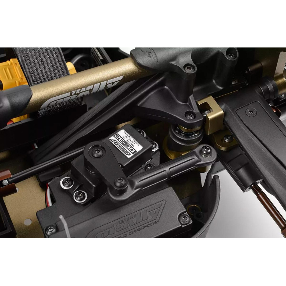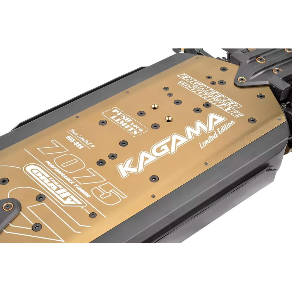A Kagama Limited Edition továbbfejleszti a standard Kagama modell bevált teljesítményét, miközben megőrzi annak bevált alkatrészeit. Számos alumínium alkatrész most egyedi, Limited Edition eloxált felülettel rendelkezik, így valóban egyedülálló. Az alváz, a rugóstagok, a kormánymű középső része és a forgócsapok beállításához szükséges anyák most exkluzív arany felületkezelést kaptak. A középső differenciálmű, a kerékagyak, a lengéscsillapító rugó előfeszítésének állítógyűrűi és a szervokar elegáns fekete eloxált felülettel rendelkeznek. Észrevetted mindet?