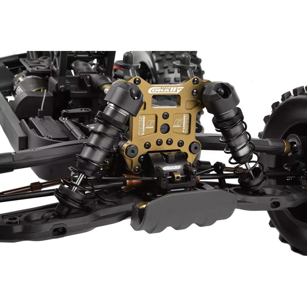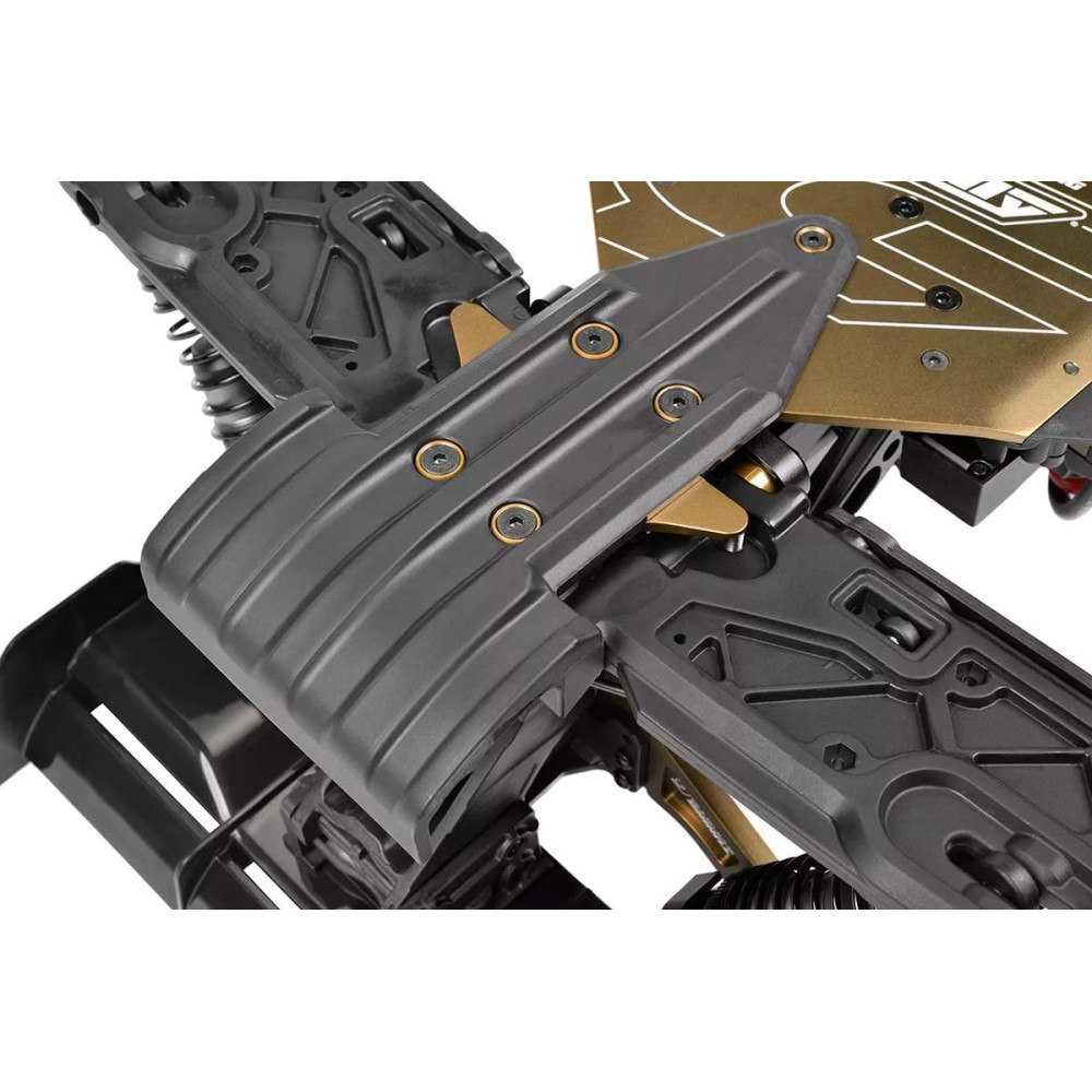 A Kagama Limited Edition modell lelke a kompromisszummentes 7075 alumínium alap – amelyet a rendkívüli tartósság és a precíz kezelhetőség jegyében terveztek. Az arany eloxált alumíniumlemezből készült 7075 alumínium ház nemcsak sűrített levegőt biztosítépítészeti szilárdságot, de kivételes stílust is. A szerkezet további megerősítése érdekében a meghajtóegységeket CNC-megmunkált, 7075-ös alumínium terelőlemezek rögzítik, amelyek megakadályozzák a nem kívánt mozgást, és extrém terhelések esetén is biztosítják a sima és megbízható erőátvitelt. Eközben a 6 mm-es 7075-ös alumínium lengéscsillapító tornyok az új lengéscsillapító távtartókkal kombinálva szilárd felfüggesztési támogatást nyújtanak, lehetővé téve a bevált Kagama lengéscsillapítók számára, hogy egyenletesen csillapítsák az ütéseket – függetlenül attól, hogy milyen erősen tolja a teherautót. Ezenkívül az alumínium szervokormányos 7075-ös haranghajtás növeli a kormányzás pontosságát és tartósságát, és minden vezetési körülmény között közvetlen és érzékeny irányítást biztosít.
