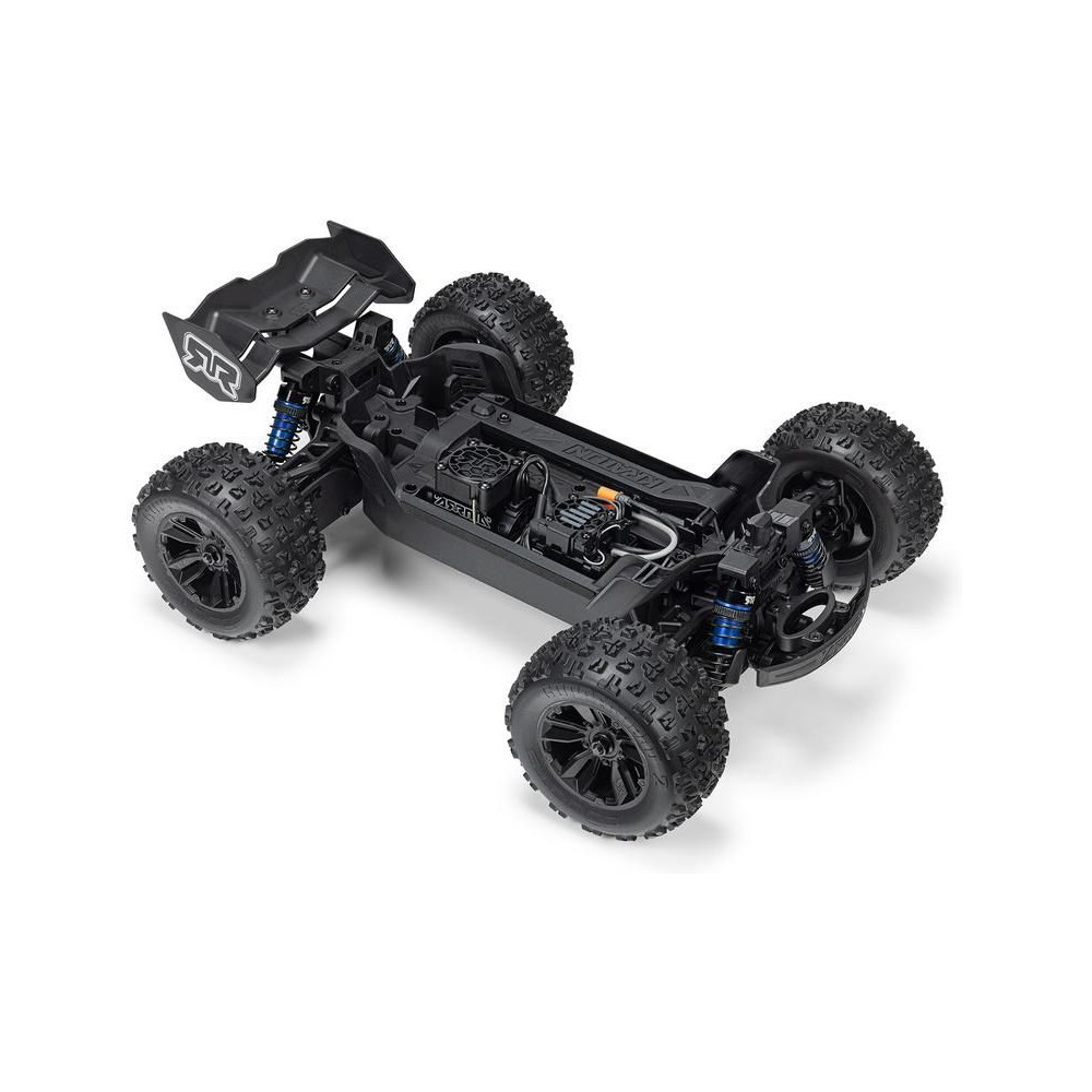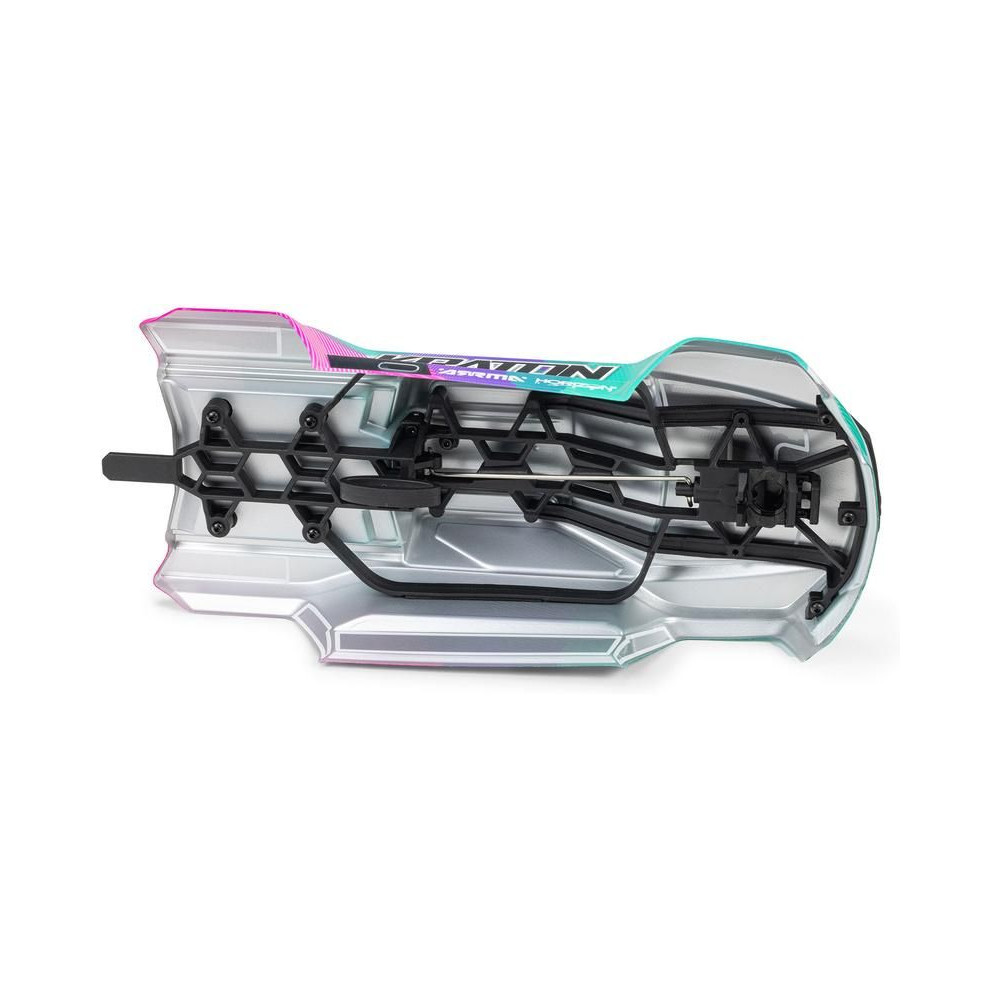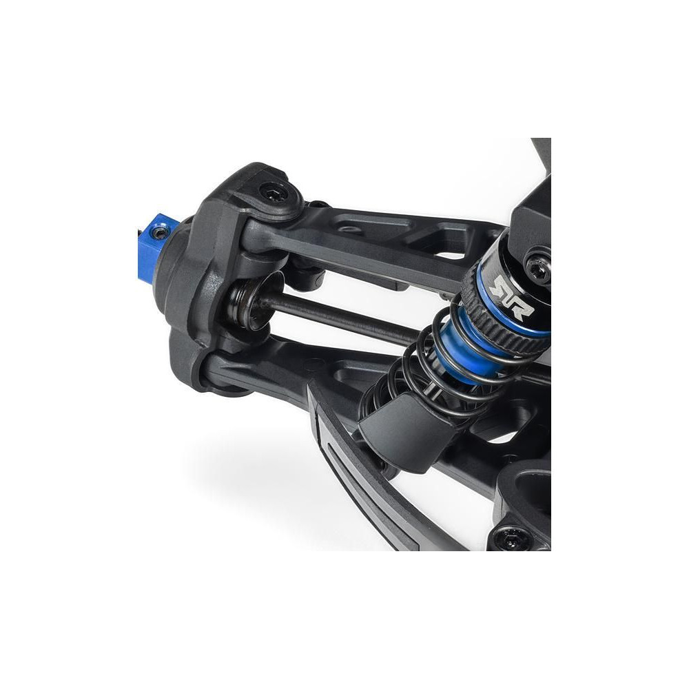 A teljes szerkezet a teljesítmény és a tartósság jegyében készült – a differenciálművek fémből készültek, akárcsak a tengelyek, az olajos lengéscsillapítók alumínium testtel rendelkeznek, a teljes hajtáslánc golyóscsapágyakat tartalmaz, az alváz alumínium színű eloxált megerősítéssel rendelkezik, a robusztus lökhárítók pedig védenek az ütésektől. Kiváló minőségű Spektrum elektronika van beépítve – AC motor, vezérlőegység és szervo fém fogaskerekekkel. A kiváló vezetési tulajdonságok mellett a modell dizájnos karosszériájával is lenyűgöz, beleértve a klipszmentes rögzítést az egyszerű összeszereléshez és szétszereléshez akkumulátorcsere esetén.