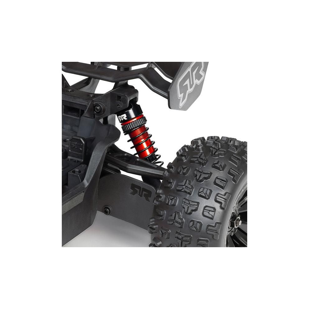 A teljes szerkezet a teljesítmény és a tartósság jegyében készült – a differenciálművek fémből készültek, akárcsak a tengelyek, az olajos lengéscsillapítók alumínium testtel rendelkeznek, a teljes hajtáslánc golyóscsapágyakat tartalmaz, az alváz alumínium színű eloxált megerősítéssel rendelkezik, a robusztus lökhárítók pedig védenek az ütésektől. Kiváló minőségű Spektrum elektronika van beépítve – AC motor, vezérlőegység és szervo fém fogaskerekekkel. A kiváló vezetési tulajdonságok mellett a modell dizájnos karosszériájával is lenyűgöz, beleértve a klipszmentes rögzítést az egyszerű összeszereléshez és szétszereléshez akkumulátorcsere esetén.