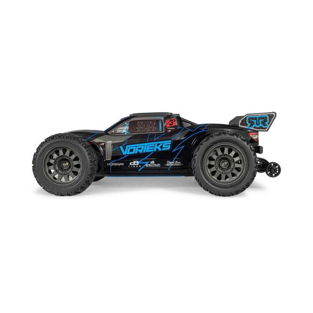 Az Arrma Vorteks 223S BLX truggy típusú RC autó 2WD meghajtással, független felfüggesztéssel, olajos lengéscsillapítókkal és erőteljes AC hajtással akár 80 km/h sebességet is elérhet. Mindez megfizethető áron egy ilyen erős modellhez képest. A BLX tartóssága, teljesítménye és precíz makett-kidolgozása egyedülálló az Arrma márkában, és a modell minden fontos tulajdonsága megmaradt. Exkluzív DSC menetstabilizálás is benne van. Az RC autó gyermekek, felnőttek, kezdők és tapasztalt vezetők számára készült, akik egy kész, tartós és gyors modellt kapnak.