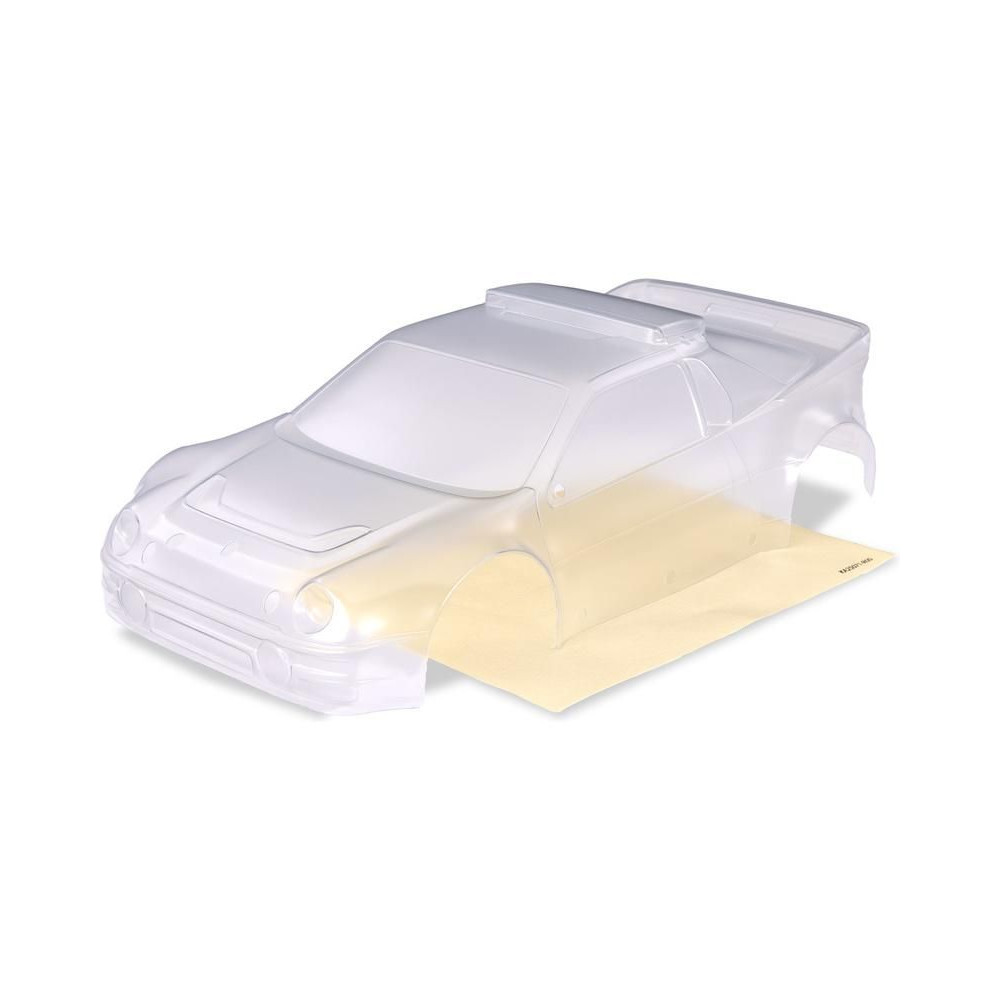 Traxxas karosszéria Ford RS200, átlátszó. Festett, pácolást és felületkezelést igényel. Ablakmaszkot és felvitt fóliát is tartalmaz.
