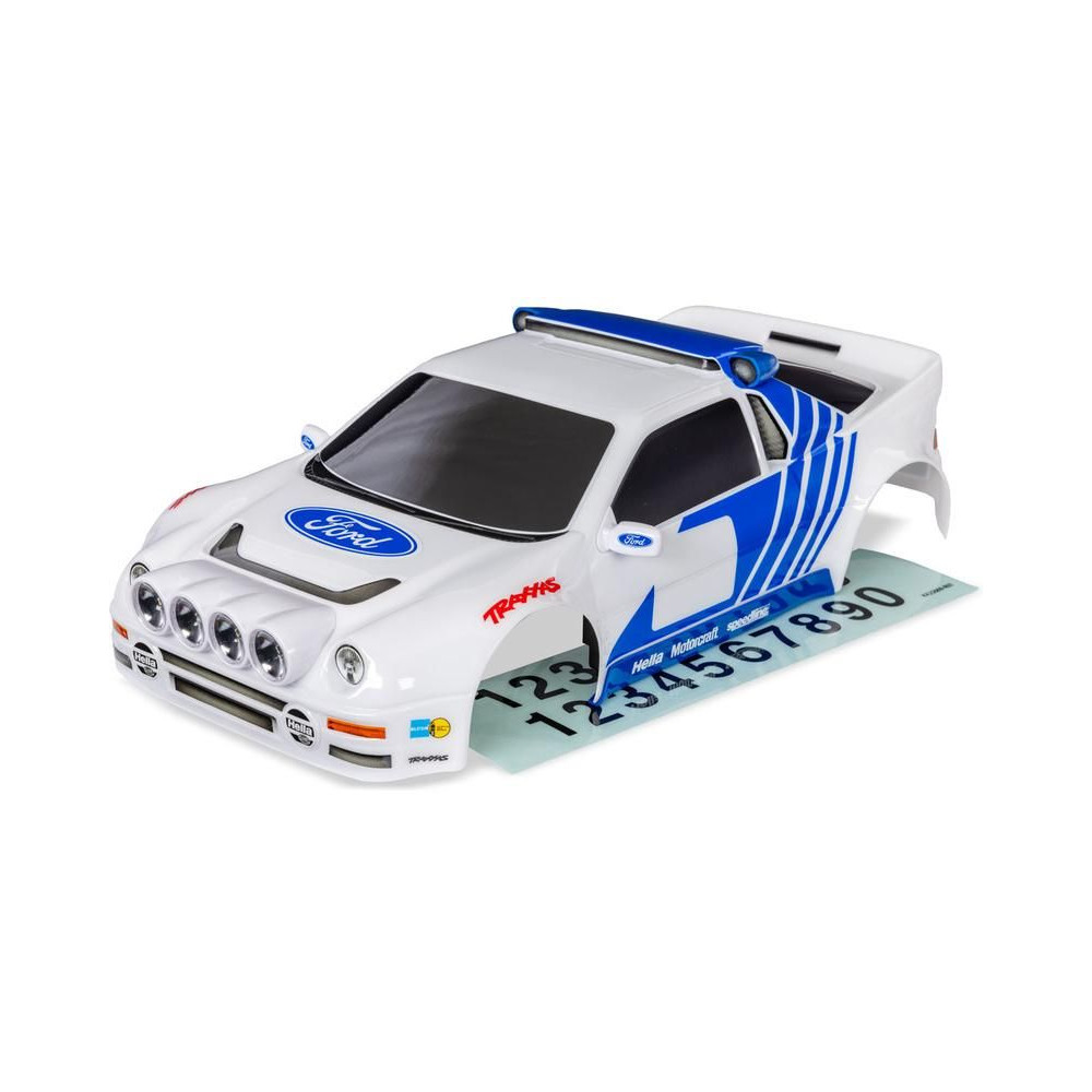 Traxxas karosszéria Ford RS200 fehér. Kész, festett és összeszerelt karosszéria ragasztott matricákkal. Tartalmazza a rögzítőelemeket, parabola lámpákat, oldalsó tükröket, küszöböket és szívónyílásokat.