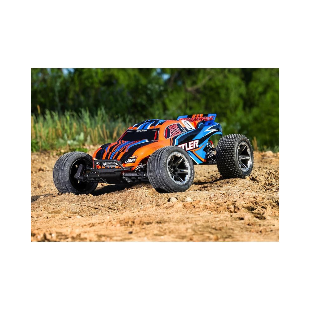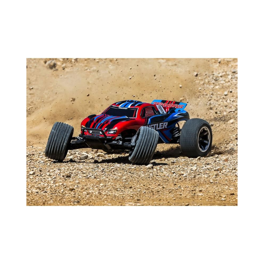 A Rustler 1:10 HD RTR RC autómodellt egy Titan 550 DC motor és egy XL-5 szabályozó hajtja, amely 2S LiPo akkumulátorokat táplál. A modell akár 48 km/h sebességgel is képes haladni! Ezenkívül gyárilag fel van szerelve az Extreme Heavy Duty készlettel a nagy tartósság érdekében, valamint egy exkluzív, kapocs nélküli karosszéria-rögzítő rendszerrel. A működéshez szükséges összes tartozék megtalálható a csomagban, beleértve az adót, a meghajtó akkumulátort és az USB-C töltőt is.