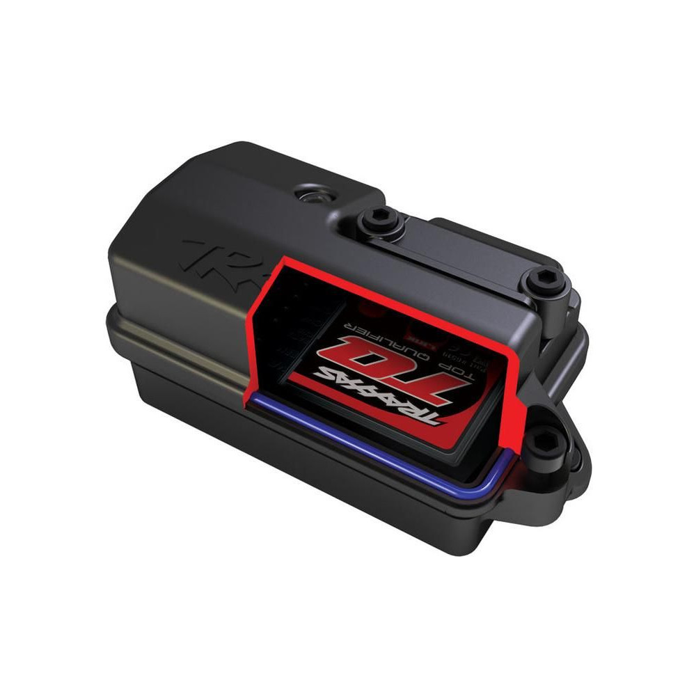 A háromcsatornás Traxxas TQ 2,4 GHz-es vevő biztonságos vezetést biztosít megszakítások nélkül. Egyszerű párosítás egyetlen gombbal. Állapotjelzés LED diódával.