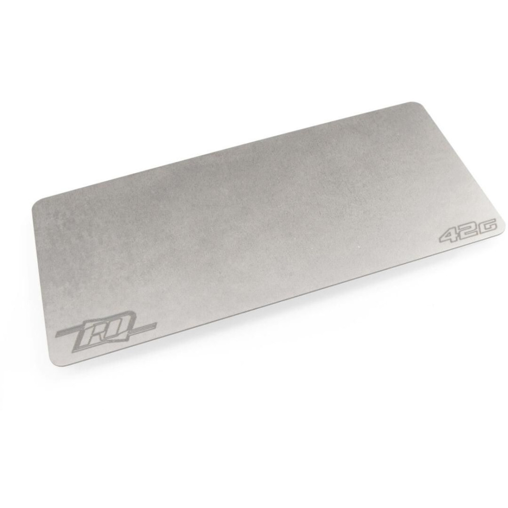 A Revolution Design Shorty Battery volfrámsúly egy precíziósan köszörült 0,5 mm-es volfrámlemez, amely 42 g súlyt ad közvetlenül bármely 95 mm-es rövid LiPo akkumulátor alá. Mivel a volfrám sűrűsége körülbelül 19,3 g/cm³ - több mint kétszerese a sárgaréz (≈ 8,5 g/cm³) és az acél (≈ 7,8 g/cm³) sűrűségének -, a lemez vastagsága kevesebb mint fele lehet a hagyományos 1-1,2 mm-es sárgaréz vagy acél alternatívák vastagságának. Az alacsonyabb profilnak köszönhetően az akkumulátor körülbelül 0,7 mm-rel mélyebben helyezkedik el, ami lejjebb viszi az autó súlypontját, és élesebb kanyarodást és stabilabb ütközéseket tesz lehetővé a nagy tapadású pályákon. A mart élek és a matt felület prémium megjelenést kölcsönöznek a deszkának, míg a nyers volfrám további bevonatok nélkül ellenáll a korróziónak.