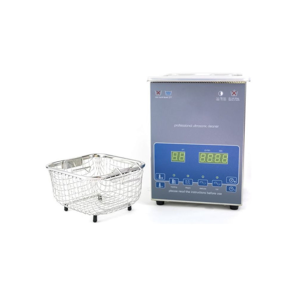 A Shesto ultrahangos tisztító fűtött 2 literes tartállyal eltávolítja a szennyeződéseket, zsírt, korróziót - olyan elektronikus és mechanikus alkatrészek tisztítására szolgál, amelyek egyébként nehezen tisztíthatók. A tartály és a kosár rozsdamentes acélból készült. Állítható teljesítmény, folyadékhőmérséklet és tisztítási idő. Degas üzemmód - eltávolítja a levegőt az oldat cseréje után.
