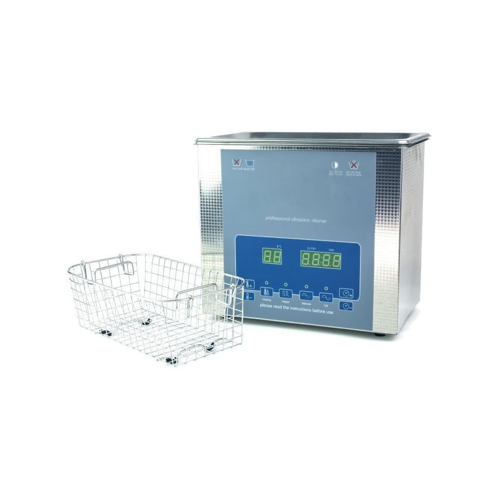 A Shesto ultrahangos tisztító fűtött 3 literes tartállyal eltávolítja a szennyeződéseket, zsírt, korróziót - olyan elektronikus és mechanikus alkatrészek tisztítására szolgál, amelyek egyébként nehezen tisztíthatók. A tartály és a kosár rozsdamentes acélból készült. Állítható teljesítmény, folyadékhőmérséklet és tisztítási idő.