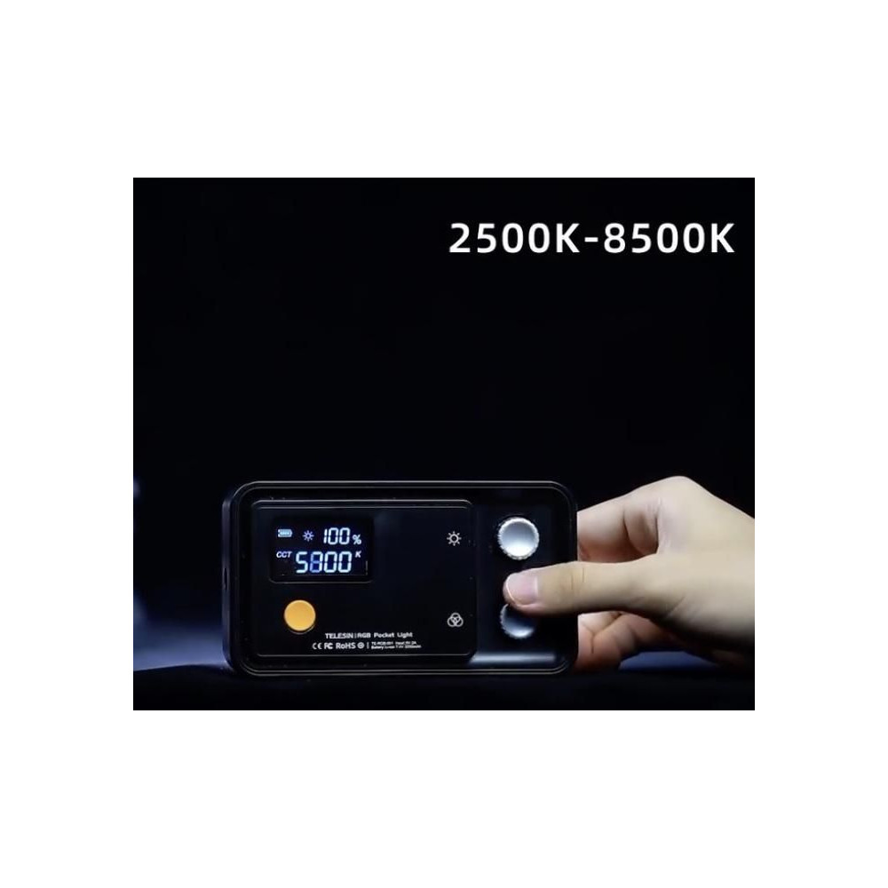 129.6 x 73.6 x 28mm 295g. Color Temperature: 2500K-8500K Power: 12W RGB: 0-360° Brightness: 1480LUX CRI: About 96 Input: Type-C 5V 2A Battery Capacity: 3200mAh