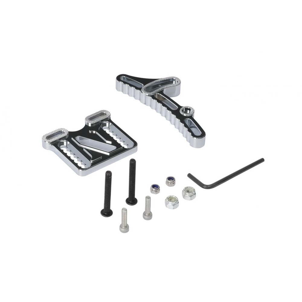 Pozicionálható Footstop v2 a Newbee márkától. Anyag: CNC maratott adonizált 6061-T6 Alumínium. Tartalmazza az M5*35mm-es csavarokat és a megfelelő anyákat a truck baseplatehez való rögzítéséhez. Szín: ezüst.