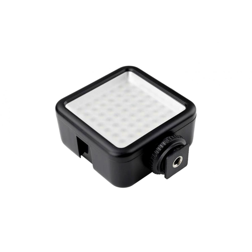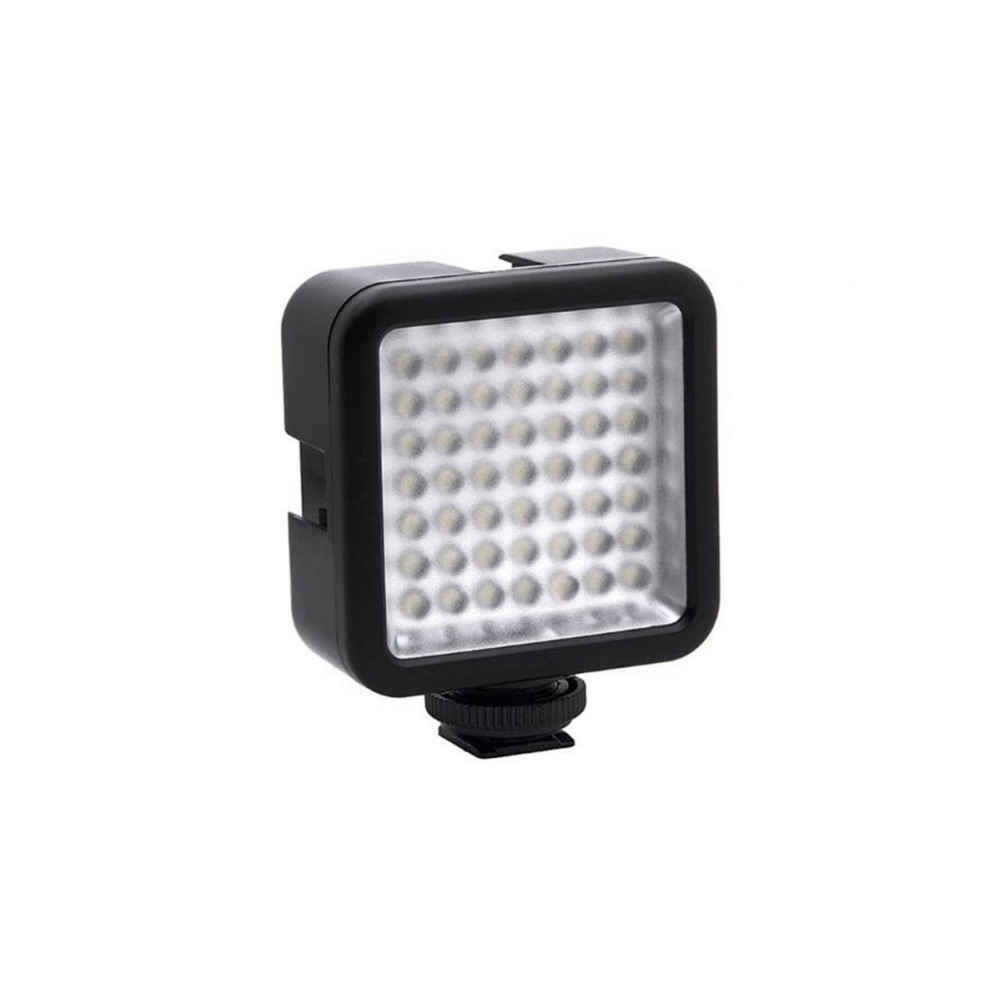 68gSize: 8*6.7*3cmLED quantity: 49 pcsMax. power: 5.5WBrightness: 1200LMColor temperature: 6000KInstallation type: with 1/4 port & cold shoe portsWithout battery (Uses 2 x AA Batteries)