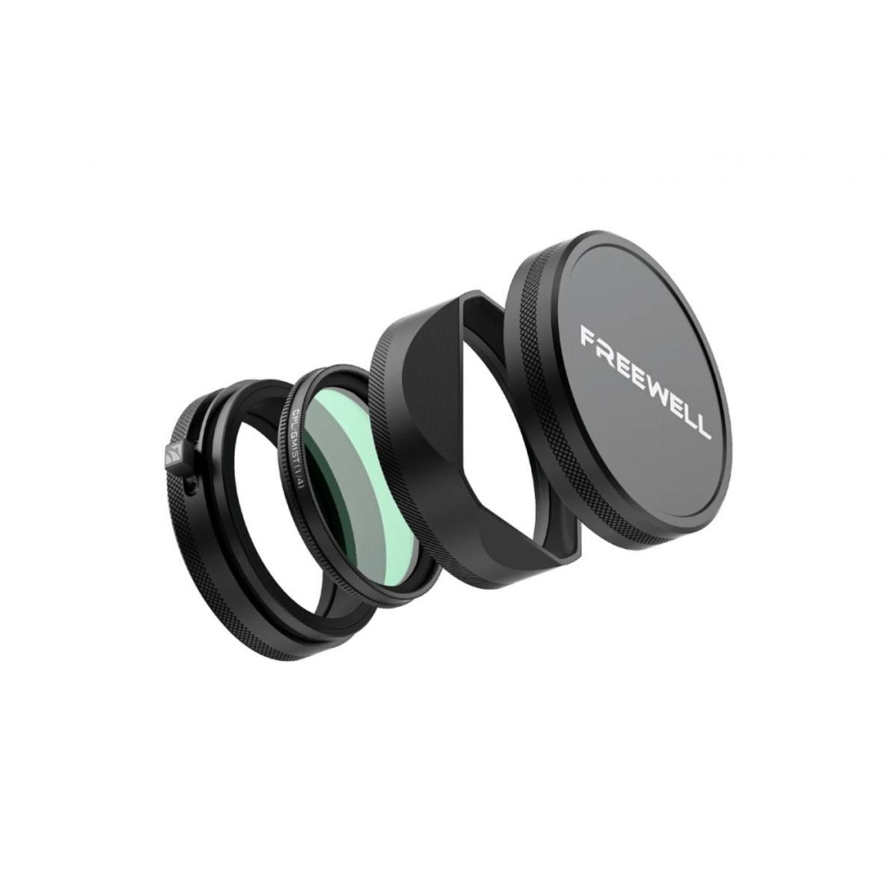 Freewell innovatív CPL/ 1/4 Glow Mist hibrid szűrő Fuji X100-hoz. A csomag tartalmaz egy reduktorgyűrűt, egy hibrid CPL/1/4 Glow Mist szűrőt, egy napellenzőt és egy lencsevédőt.