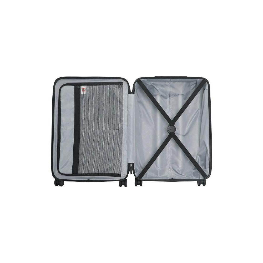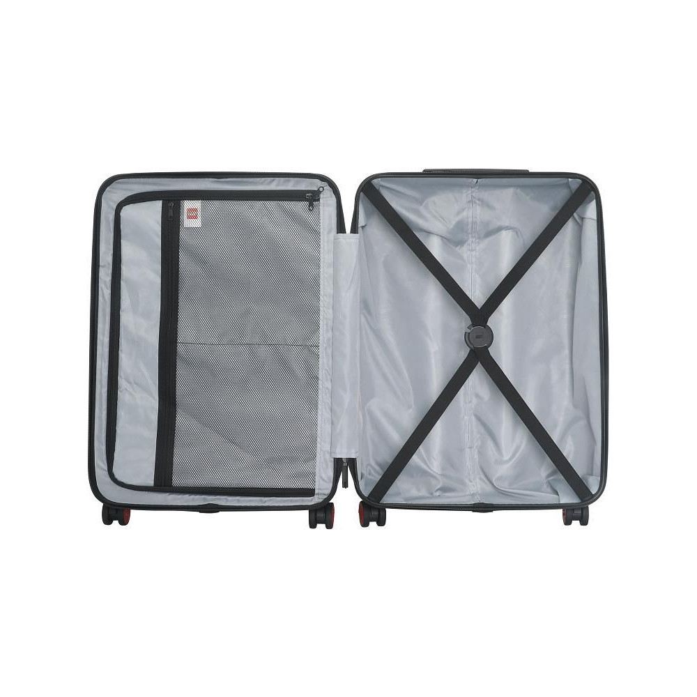 - Ikonikus LEGO-dizájn, az egyik oldalon színes LEGO-téglával, a másik oldalon pedig a LEGO logóval a bőrönd színében.