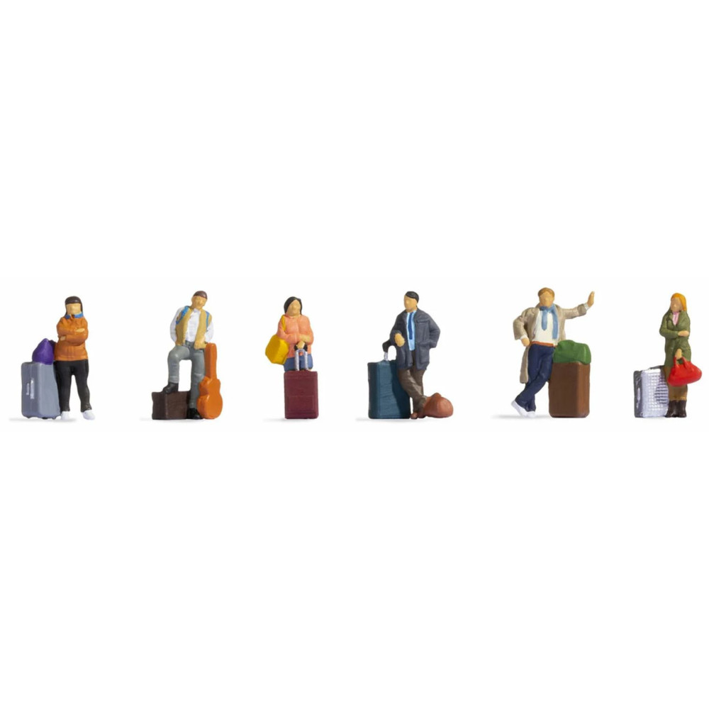 Sada figúrok "Cestujúci" pre rozchod H0 je ideálna na naplnenie scén železničných staníc životom. Žena stojí vedľa svojho veľkého kufra, na ktorý si položila kabelku. Muž s gitarou si opiera nohu o svoj kufor. Súčasťou súpravy sú aj ďalšie dve ženy, ktoré stoja vedľa svojich kufrov a majú pri sebe kabelku. Ďalší muži sa opierajú o svoje kufre a tiež majú so sebou príručnú batožinu. Jeden z nich má na sebe šatku a ruku natiahnutú, aby privolal prichádzajúci taxík.