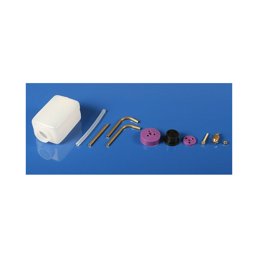 Könnyű, de erős 55 ml-es nejlon tartály izzó üzemanyaghoz, tartós fedéllel, gumidugóval és hátlapi lemezzel. Előre hajlított sárgaréz szerelvények és szívósúly, szilikoncső. Méretek (nyak és kupak nélkül): 61x41x33 mm, súly: 29 g.