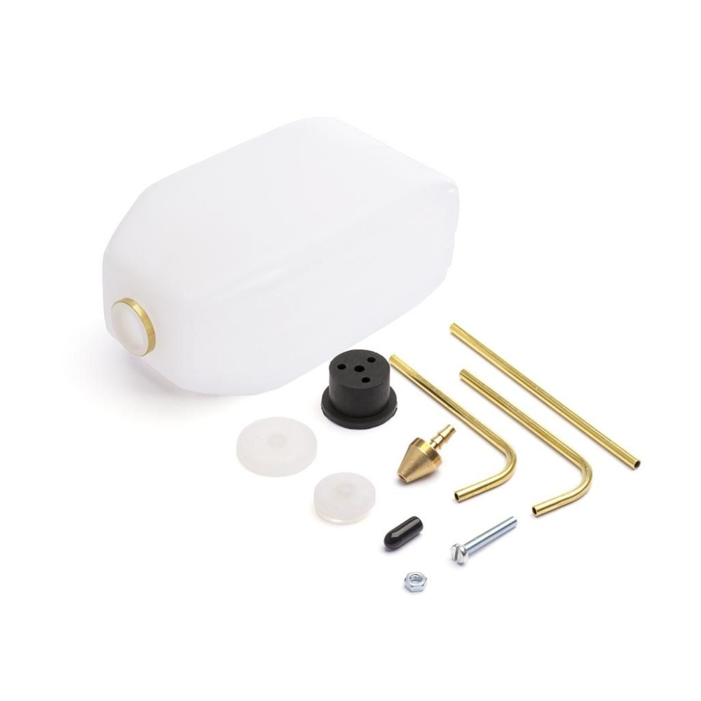 A speciális gyártási eljárás kiküszöböli a vékony falú területek kialakulásának lehetőségét a tartályban. Ezek a tartályok alkalmasak túlnyomásos rendszerekhez. A tartály nyakán található sárgaréz gyűrű megakadályozza a repedést, amely egyes tágulási kupakkal ellátott tartályoknál előfordulhat. A téglalap alakú forma lehetővé teszi a hely maximális kihasználását és megakadályozza a nem kívánt csavarodást. A hátsó nejlontárcsán lévő anya megakadályozza a menet kihúzódását és az üzemanyag szivárgását. A nehézfém szívókúp garantálja az üzemanyag egyenletes áramlását. A gázkar könnyen vezethető a tartály oldalfalain található hat üreges horonyban (kivéve a KAV0031B rendelési számot). Előre hajlított sárgaréz csövet tartalmaz a gyors összeszereléshez. Izzógyújtókhoz vagy benzinhez való üzemanyaghoz (csak a KAV0031B rendelési szám kizárólag izzógyújtókhoz való üzemanyaghoz használható). Benzinhez használjon pótkupakot, rendelési szám: KAV0032.1.