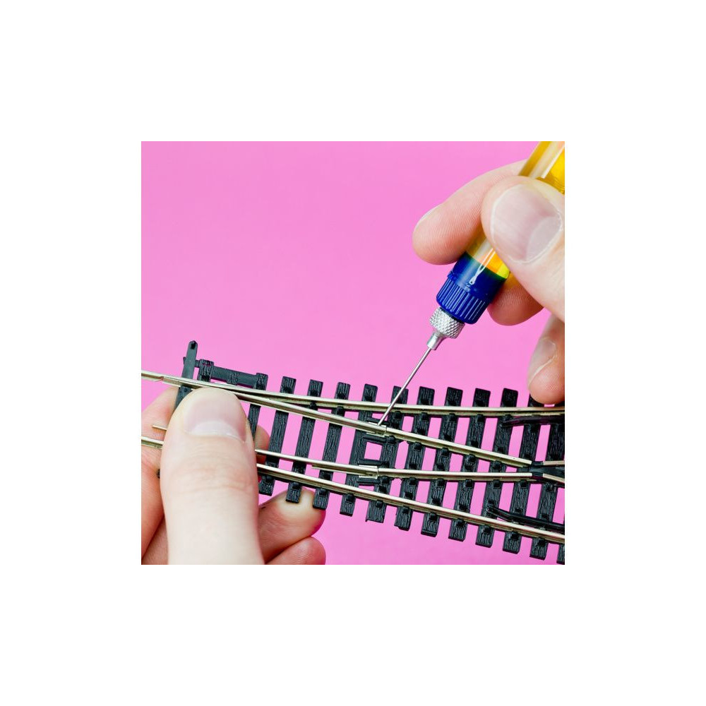 A Modelcraft 7,5 ml-es precíziós olajozója pontosan oda juttatja az olajat, ahová kell, a legnagyobb pontossággal. Ideális a műszerek finom mechanikájának kenésére, modellezők, hobbisták és profik számára egyaránt. Tartalmazza a 7,5 cm3 olajat, az adagoló fedelét. Hossza 135mm, átmérője 15mm.