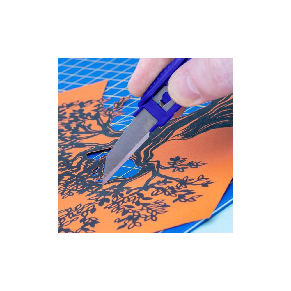 Praktikus, eldobható hobbikés készlet 5 pengével. Az SK5 szénacél pengék a nyélbe vannak szorítva, ami tartós élességet és tartósságot biztosít. Ideális modellezéshez, kézműves és művészeti tevékenységekhez, olyan anyagok vágásához, faragásához és karcolásához, mint a papír, karton, vinil, balsafa, bőr és egyebek.