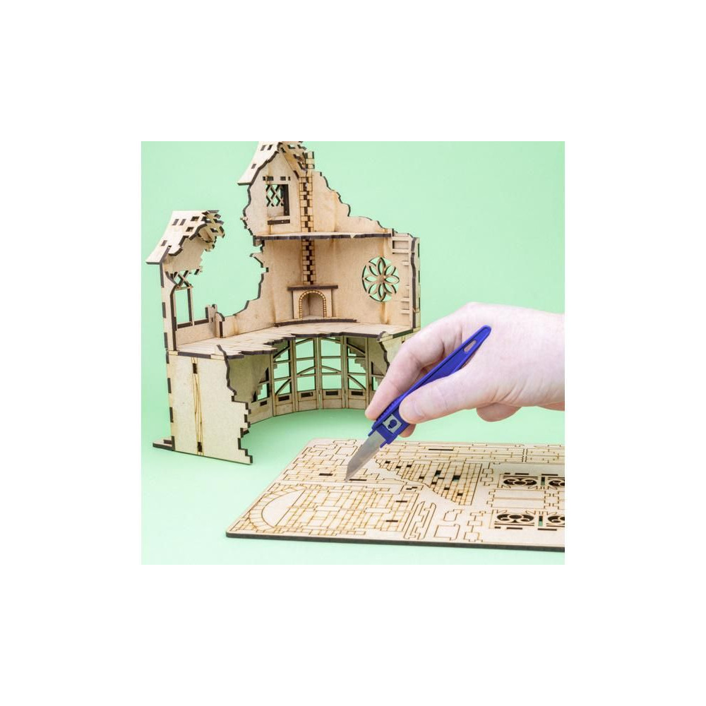 Praktikus Modelcraft eldobható hobbikéskészlet 5 pengével. Az SK5 szénacél pengék az ergonomikus nyélbe vannak szorítva, ami tartós élességet és tartósságot biztosít. Ideális modellezéshez, kézműves és művészeti tevékenységekhez, papír, karton, vinil, balsafa, bőr és egyéb anyagok vágásához, faragásához és karcolásához. Minden kés pengevédővel van felszerelve.