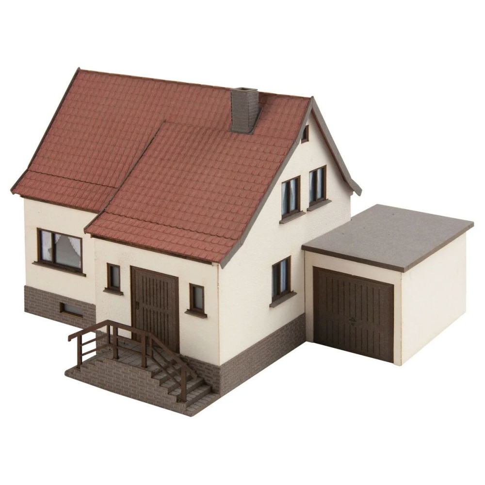 Tento roztomilý domček s príslušnou garážou je ideálnou laserom vyrezávanou stavebnicou pre malú obytnú oblasť vo vašom modeli krajiny a dobre zapadá do krajiny.