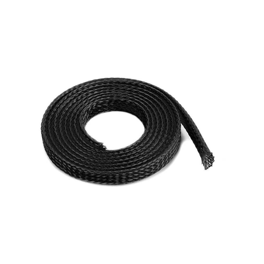 Védő kábelfonat, 6 mm átmérőjű, fekete színű, 1 m hosszú. A méret határozza meg azt az átmérőt, amelyhez a fonat ajánlott. A fonat rugalmas anyagból készül, amely különböző formákhoz és méretekhez igazítható, hő hatására nem zsugorodik.