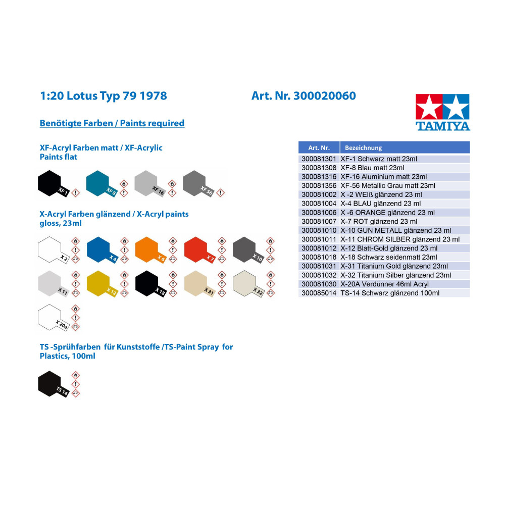 - Súčasťou sú 2 typy valčekov, ako aj vývody vzduchu na bočných pontónoch, ktoré umožňujú výber zostavy z auta riadeného Mariom Andrettim alebo Ronniem Petersonom z GP Veľkej Británie alebo GP Nemecka.