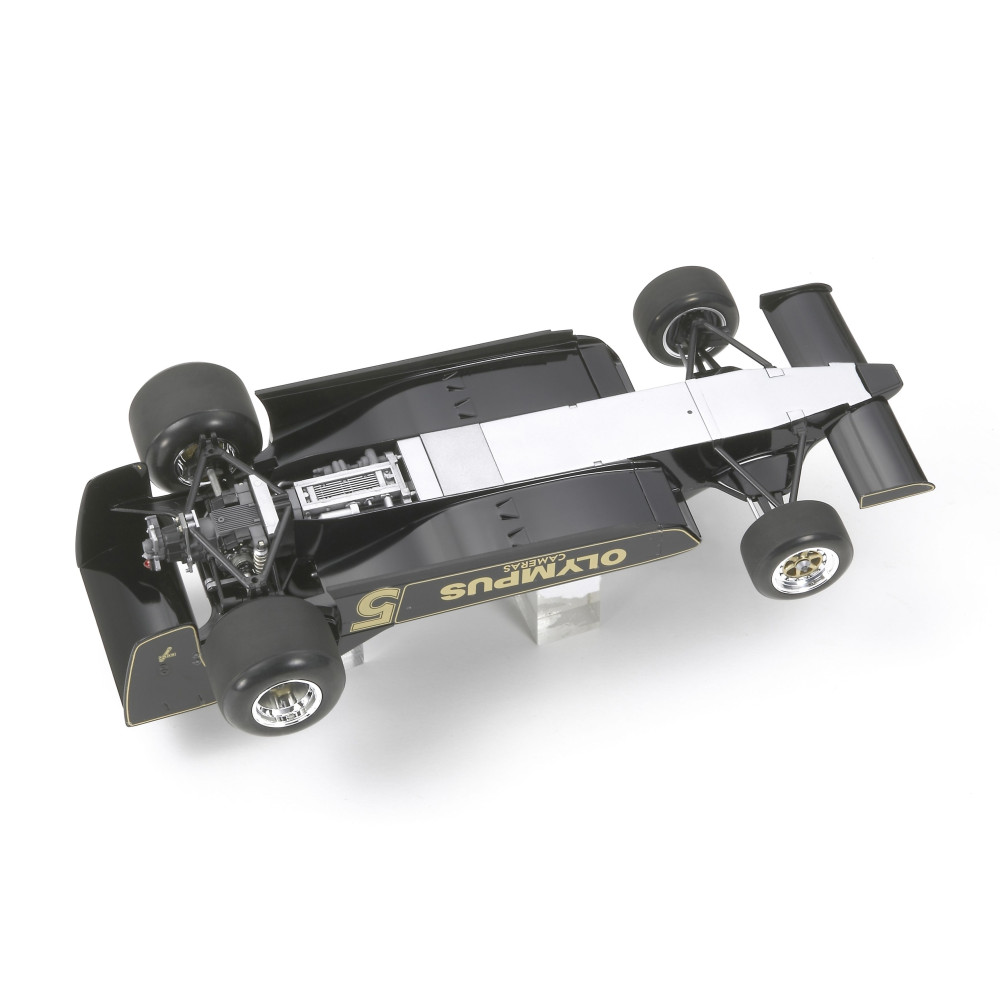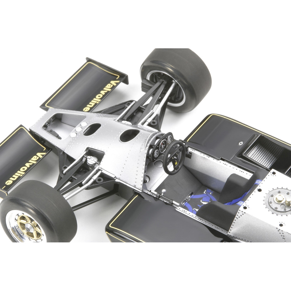 | Detailný motor Ford DFV je vybavený kovovými krytmi vzduchového lievika a káblami zástrčiek pre zvýšenie realizmu. | Presne reprodukovaný štíhly monokokový podvozok a široké bočné pontóny so spodnými plochami ako obrátenými krídlami lietadla. | Predné a zadné kryty sú odnímateľné aj po zostavení. Súčasťou sú 2 typy rolovacích tyčí a vývody vzduchu na bočných pontónoch. |