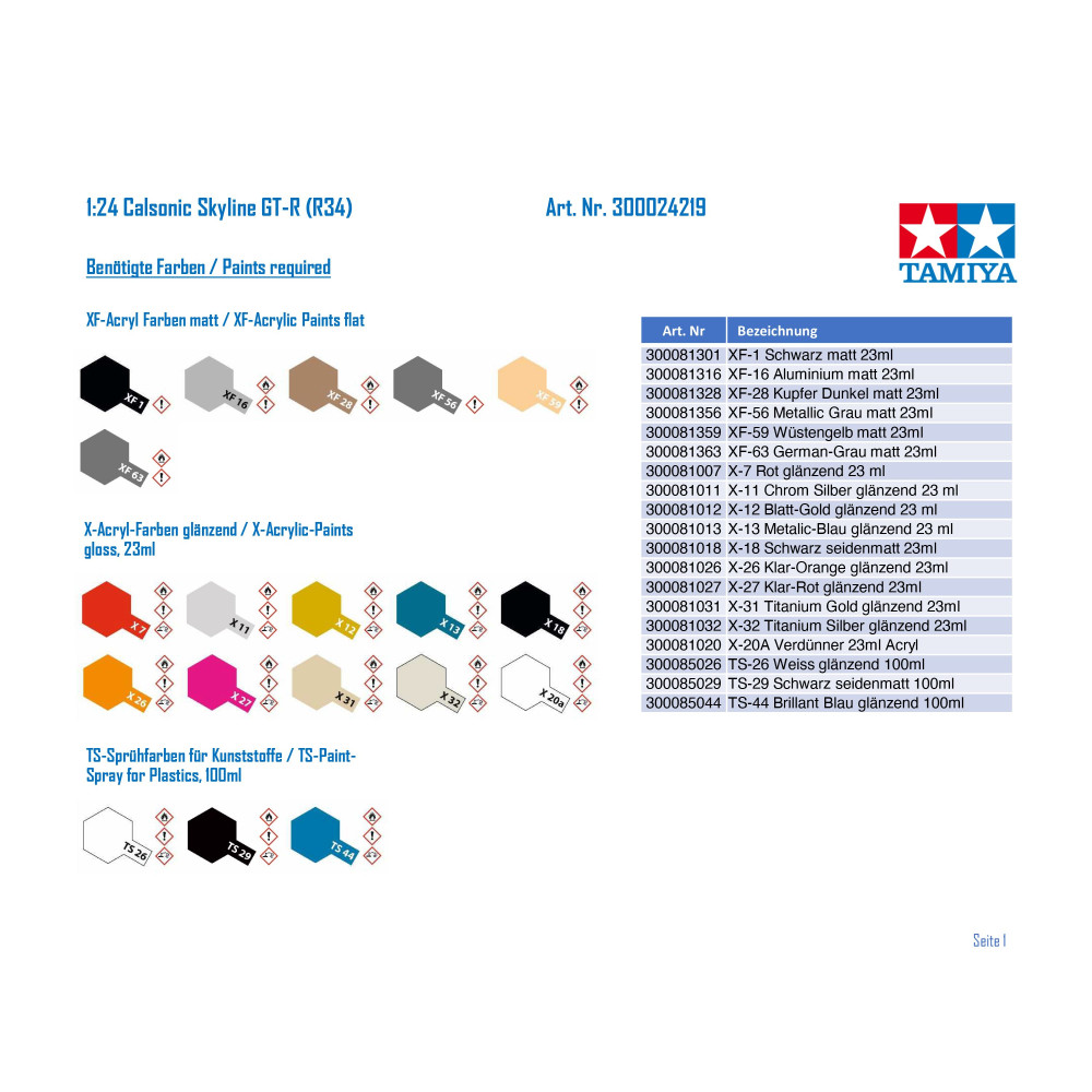 ★ Toto je stavebnica plastového modelu znázorňujúca model Calsonic Skyline GT-R, ktorý sa v roku 1999 zúčastnil majstrovstiev Japonska v pretekoch Grand Touring Car Championship. ★ Nízke a široké tvary vozidla sú zachytené s nadhľadom. ★ Detailný interiér má valcovú klietku a ďalšie prvky. ★ Spodná časť modelu má na čo pozerať, s vyobrazením dvojramenného zavesenia a výfukovej časti. ★ Šesťlúčové kolesá sú vyobrazené so slickovými pneumatikami. ★ Súčasťou stavebnice sú obtlačky na stvárnenie početných log sponzorov a ďalšie.