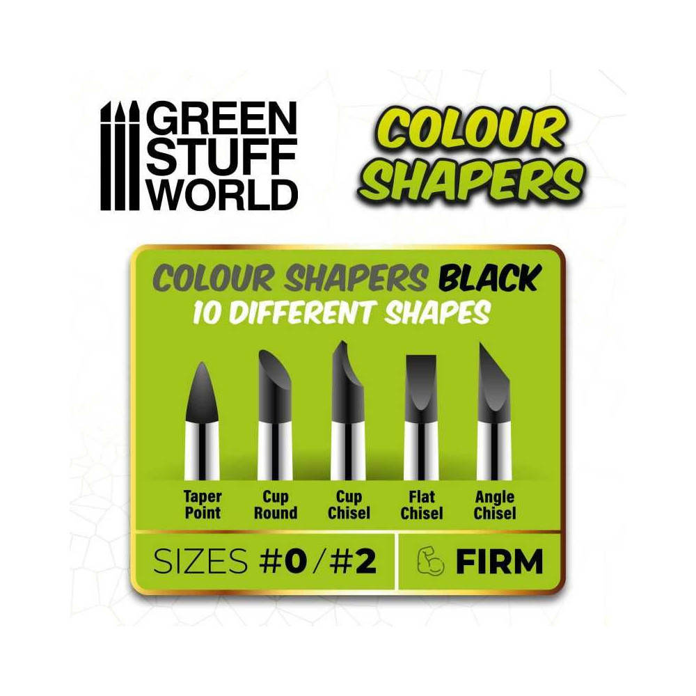 A kínált méretekben minden ecset más-más felhasználási móddal rendelkezik attól függően, hogy milyen gittet szeretnénk használni. A Green Stuff World azonban fehér hegyű ecseteket ajánl puha gittekhez, és 2-es MÉRETŰ ecseteket keményebb anyagokhoz, például a Green Stuffhoz és a Super Sculpey Firmhez. Ízlés és preferencia kérdése, de végül, ahogy a szobrászati készségeid fejlődnek, végül mindegyikből lesz egy-egy készleted.