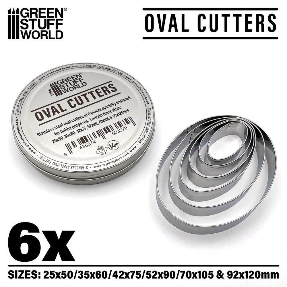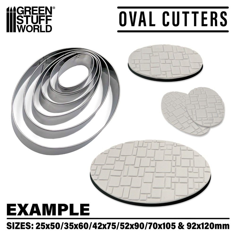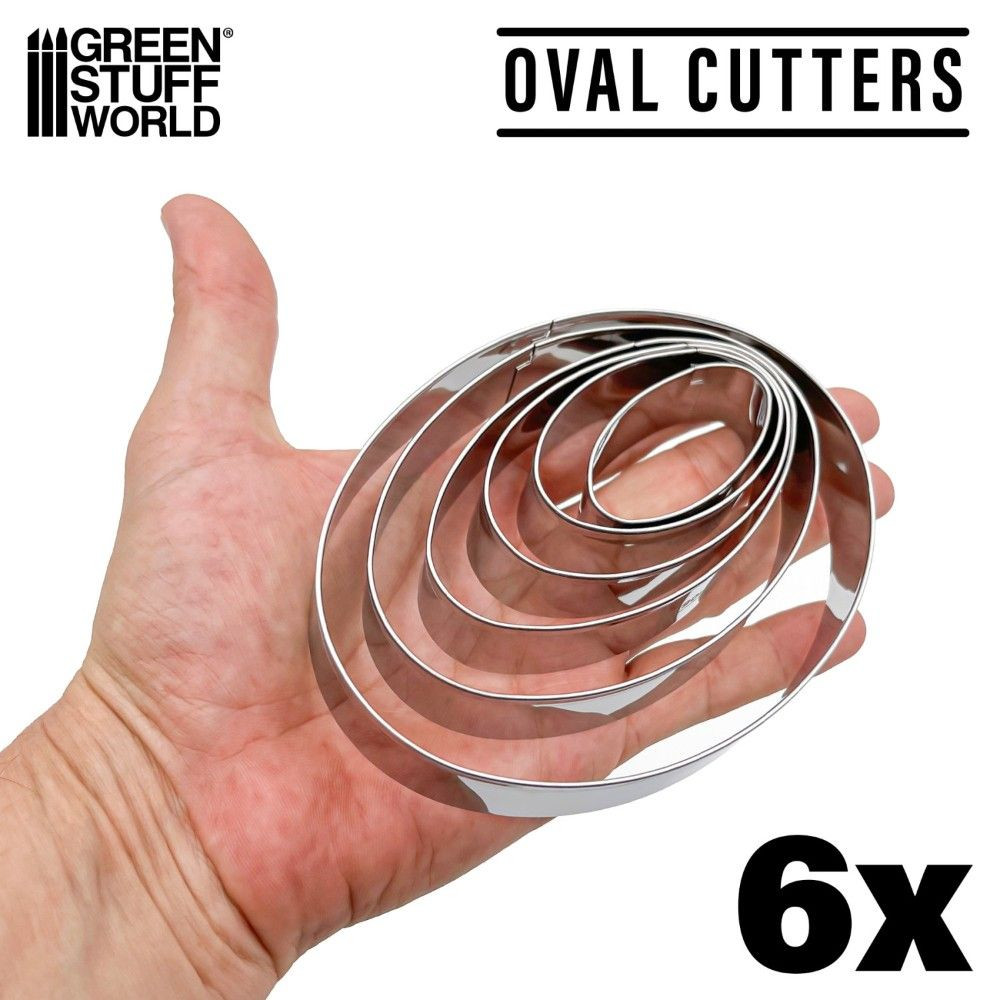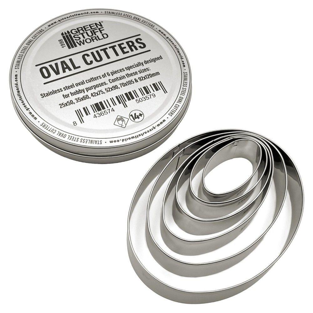 A rozsdamentes acél ovális vágókészlet a leggyakrabban használt méreteket tartalmazza modellalapok és betétek készítéséhez. Ez az eszköz lehetővé teszi a modellező agyagok, gittek és más puha anyagok gyors és pontos kivágását. Ezek a vágók különösen ideálisak olyan rendszerekhez készült alapok készítéséhez, mint az Age of Sigmar (AoS) , ahol sokat használnak ovális formákat.