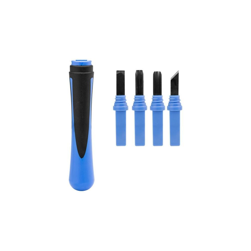 Praktikus, kompakt, négy darabos, egynyélű vésőkészlet a Modelcrafttól. A vésők könnyen átalakíthatók könnyű, puha markolatú nyelűvé, ami precíz munkát garantál. A készlet alkalmas otthoni hobbihoz, kézműveskedéshez vagy modellezéshez, valamint fa és egyéb anyagok finom megmunkálásához.