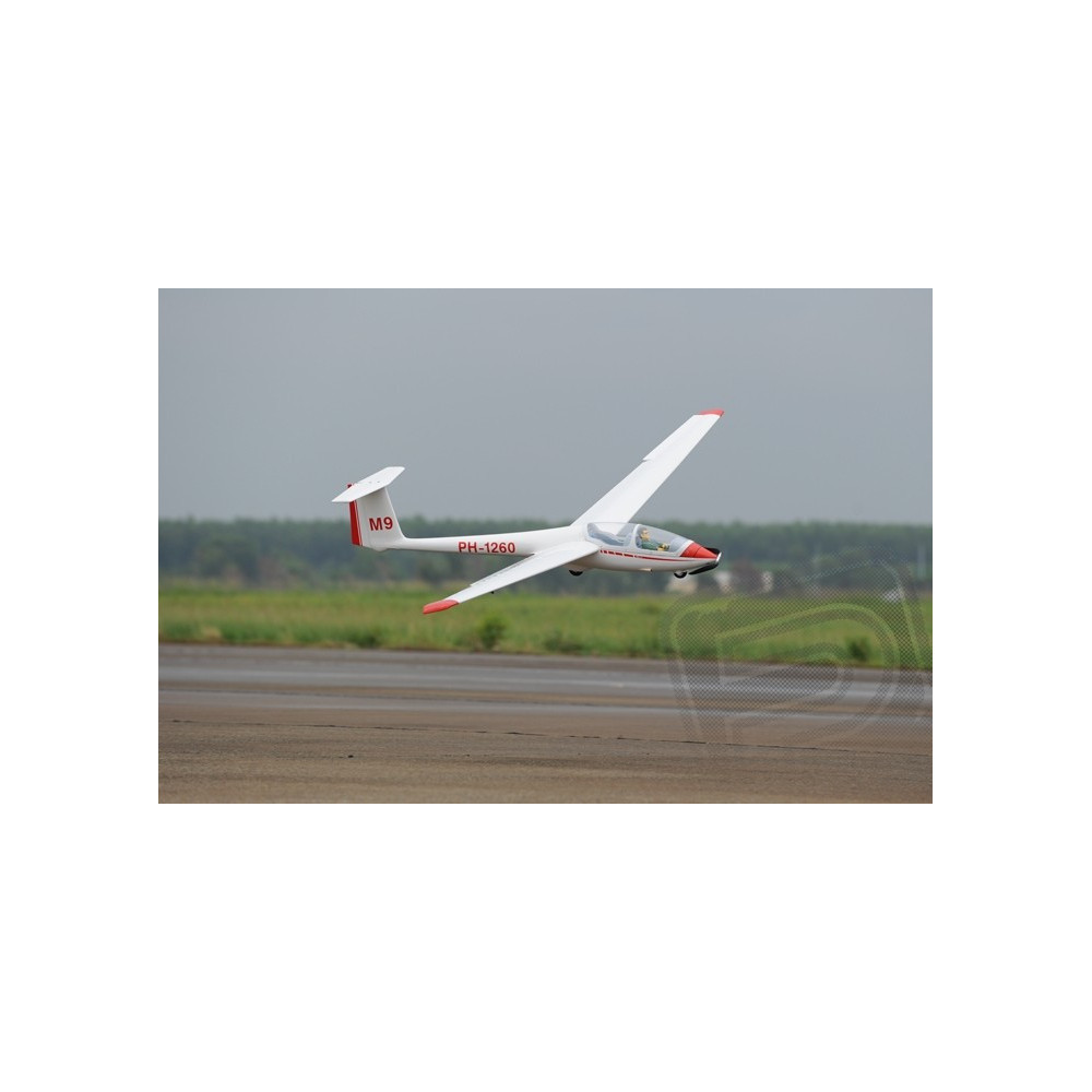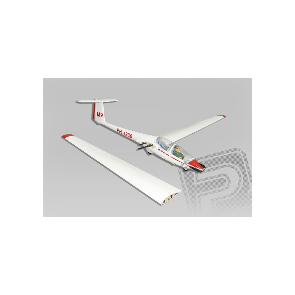 3200 mm-es nagy teljesítményű vitorlázórepülőgép félmárka termikus vitorlázáshoz. Szerkezeti törzs, szárny és farokfelület, vezérelt szárnyszárnyak, kormánylapát, magassági kormány. Készen áll az elektromos motor beépítésére az orrba.
