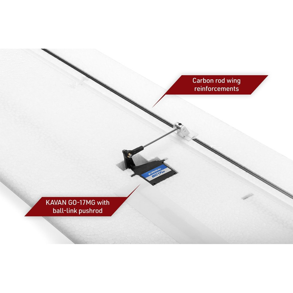 kész törzs, szárny és farokfelület EPO habból, beépített motorral, légcsavarral, vezérlővel és 4 szervóval, használati utasítás