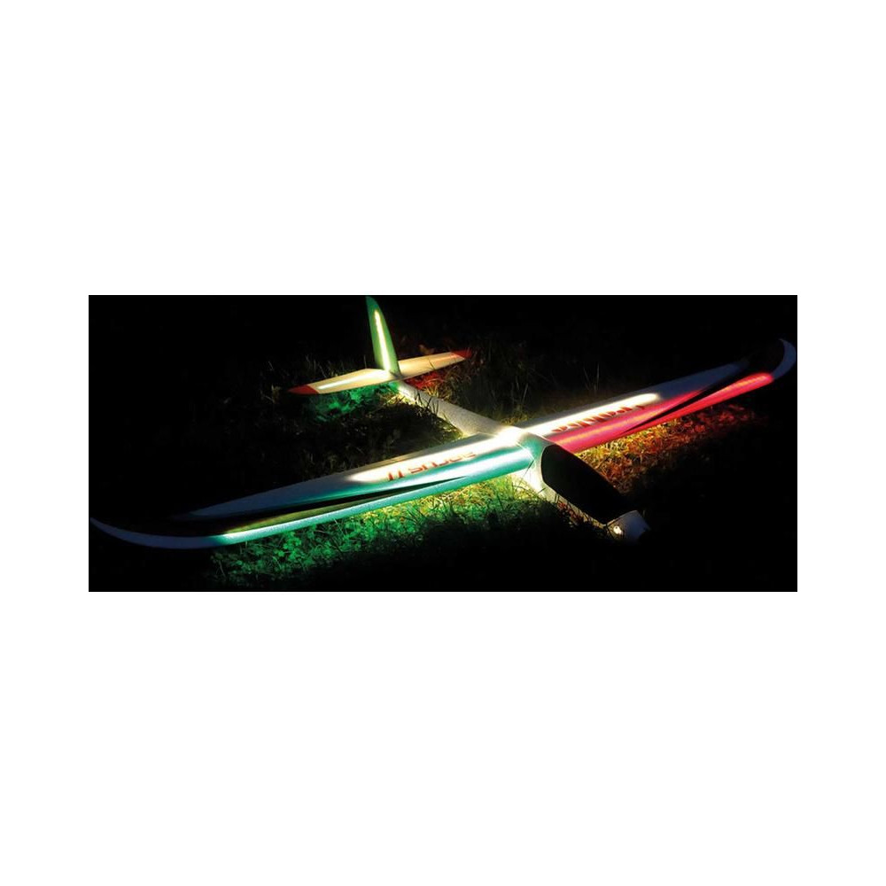 Az Arcus II Night opcionálisan utólagosan felszerelhető elmozdulási fékszárnyakkal. A nagyméretű szárnyak már rendelkeznek egy jelzett elválasztó vonallal a szétválasztáshoz, valamint a szervókarok rögzítési pontjaival is. A szárnyak kábelcsatornákkal vannak ellátva a szervók számára. Tehát csak a rendelkezésre álló utólagos felszerelési készletre és két további kb. 9g-os szervóra, megfelelő ragasztóra és természetesen egy szabad csatornára van szükség a távirányítón és a vevőn. Az összeszerelést természetesen az illusztrált építési útmutató ismerteti.
