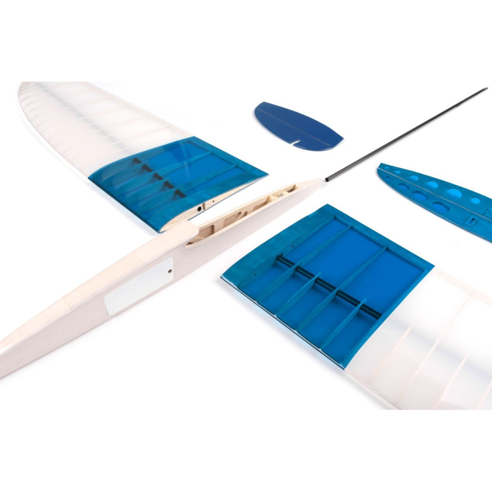 A farokfelületek deszkából készültek, CNC vágott balsa alkatrészekből ragasztva. A kormányok vezérlése drótkötelekkel történik.
