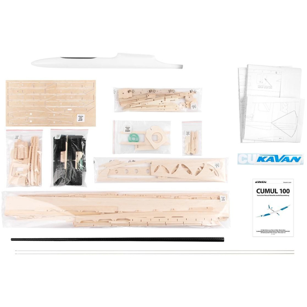 A készlet egy nagy teljesítményű, klasszikus, nagyon könnyű, teljesen balsából készült, kiömlésbiztos kivitelű hőventilátor, amely olyan egyszerűen átalakítható, hogy a KAVAN C2836/AXI 2217 osztályú váltakozó áramú villanymotor meghajtására alkalmas. A CUMUL 100 ideális projekt annak a modellezőnek, aki egy igazán nagy teljesítményű modellt szeretne építeni szabadidős és versenyrepülésre. A CNC vágott, távtartókkal szerelt alkatrészekből álló, kifinomult konstrukciónak és a kirakós játék darabjaiként egymáshoz illeszkedő alkatrészeknek köszönhetően az építés nagyon gyors és egyszerű. A Cumulo 100-zal nem fogsz elveszni az F5J kategóriás versenyeken vagy a különböző endurance osztályokban. A készlet tartalmazza a törzsalkatrészeket egy tiszta elektrojethez. Az építés szép gyorsan megy, és nem vesz igénybe túl sok időt - a CUMUL 100 egy viszonylag egyszerű modell, de nem kezdőknek szánták.