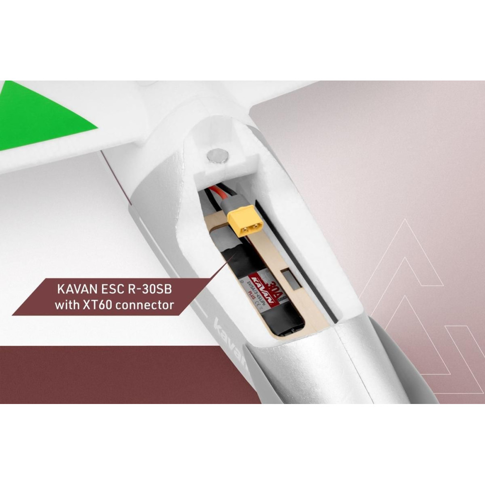 A törzs a felszerelt C2217-1200 motorral, a KAVAN R-30B Plus vezérlővel (kiterjesztett programozási lehetőségekkel), valamint az oldalkormány és magassági kormány szervókkal EPO habból készült. A kabinburkolat mágneses zárral levehető. A kétrészes, szénszálas gerendákkal ellátott szárny szintén EPO-ból készült, a csűrőket 2 szervomotor vezérli, amelyek a szárnyban rövid, egyenes huzalrudakkal vannak elhelyezve. A szárnyfeleket alumíniumötvözet tengelykapcsoló köti össze, műanyag összekötő lemezzel rögzíti, és egy pár csavarral rögzíti a törzshöz. A klasszikus elrendezésű farokfelületek EPO-ból készültek, vezérlésük drótköteles vezetőkkel történik. Egy pár csavarral vannak a törzshöz rögzítve. A 8,5×6"-os összecsukható légcsavar (az átmérőt egy nagyobb átmérőjű kúp adja hosszabb gerendával) szabványos 8×6"-os lapátokat használ. A motor, a szabályozó és az akkumulátor hűtését az orr oldalán található további hűtőlevegő-beömlők segítik, a felmelegített levegőhöz szükséges kimenet a törzs alján, a szárny alatti térben található.