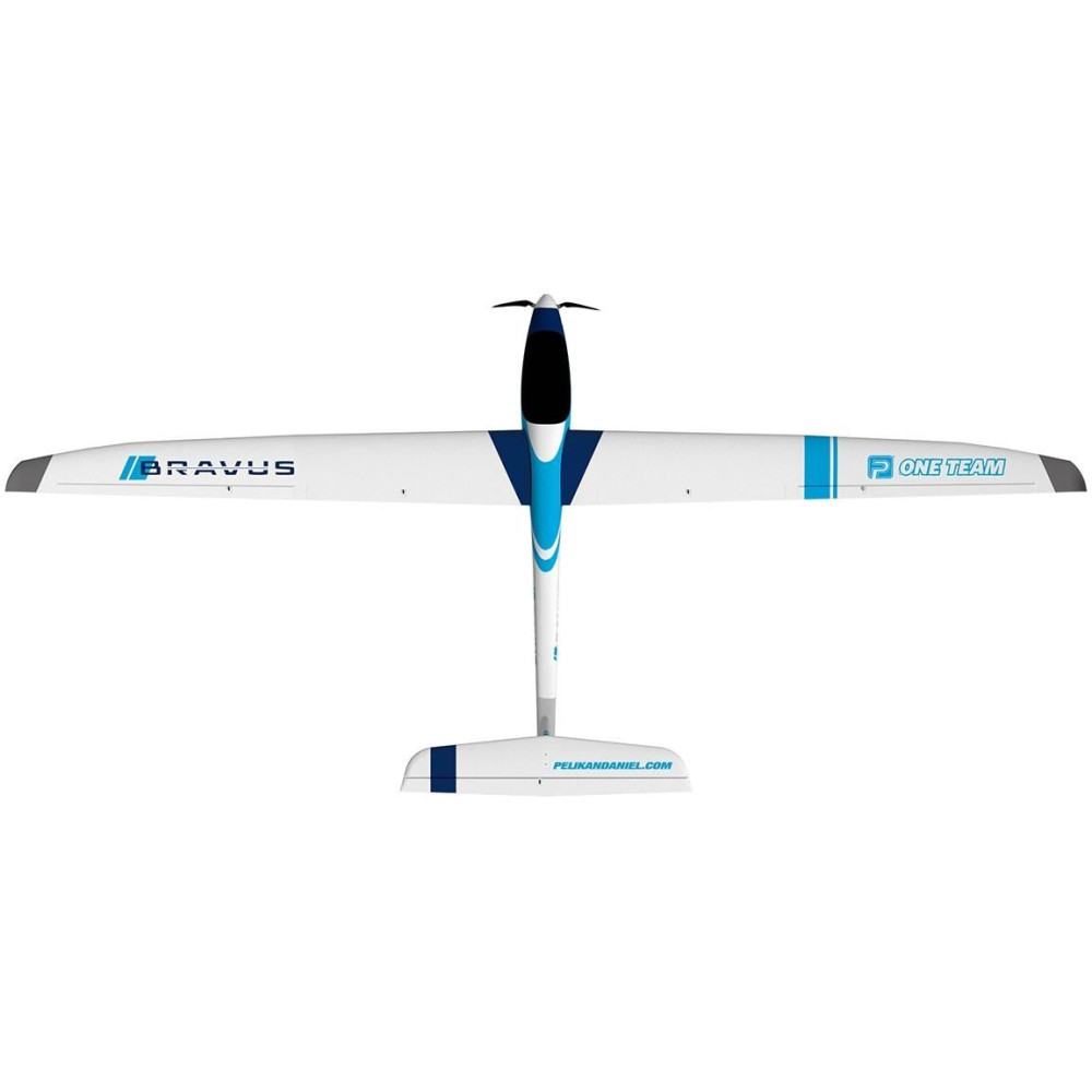 A BRAVUS 2400 egy nagy teljesítményű motoros vitorlázórepülőgép, amely rendkívül ellenálló extrudált poliolefin EPO-ból készült, és egy váltakozó áramú motorral működik. A törzs beépített motorral (forgóburkolattal, C2836-850 fordulat/perc V-n) rendelkezik, RAY G2 R-50SB szabályozóval és nagy teljesítményű kapcsolható BEC stabilizátorral a 6 szervomotor, valamint a gerincbe beépített kormány- és magassági kormány szervomotorok biztonságos áramellátásához, EPO habból öntve; a törzs tömör "gerince" egy széncsőből áll. A kabinfedél mágneses zárakkal levehető. A sebességszabályozó könnyen programozható adó vagy RAY G2 programozókártya segítségével, LiPo, LiFe és NiMH akkumulátorokkal is működtethető. A 9x7"-os légcsavar összecsukható, turbókúppal, középen a hűtőlevegő beömlőnyílásával. A motor, a szabályozó és az akkumulátor hűtését az orr oldalán található további hűtőlevegő-beömlők segítik, a meleg levegőhöz szükséges kimeneti nyílások a törzs oldalán, a szárny alatti térben találhatók.