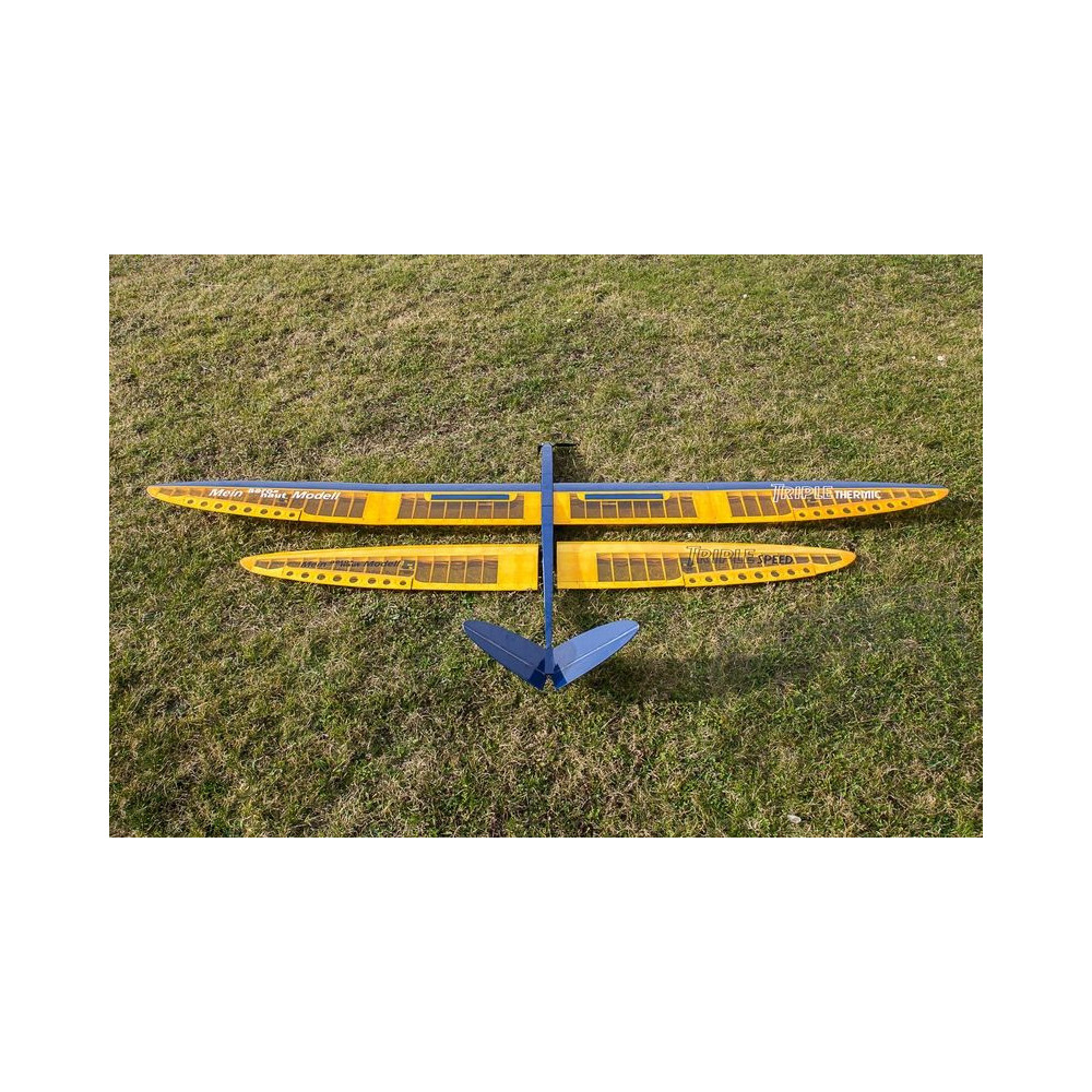 Szélvitorla készlet a kiömlőben, villamosítás lehetőségével, elektromos motorhoz való átalakító készlettel. Klasszikus, teljesen balsából készült konstrukció, pillangó farokfelületekkel. Szárnyfesztávolság: 1780mm, hossz: 1220mm, súly: kb. 480g. . . . . . . . FIGYELEM - a változat csak a "Speed" szárnyat tartalmazza.