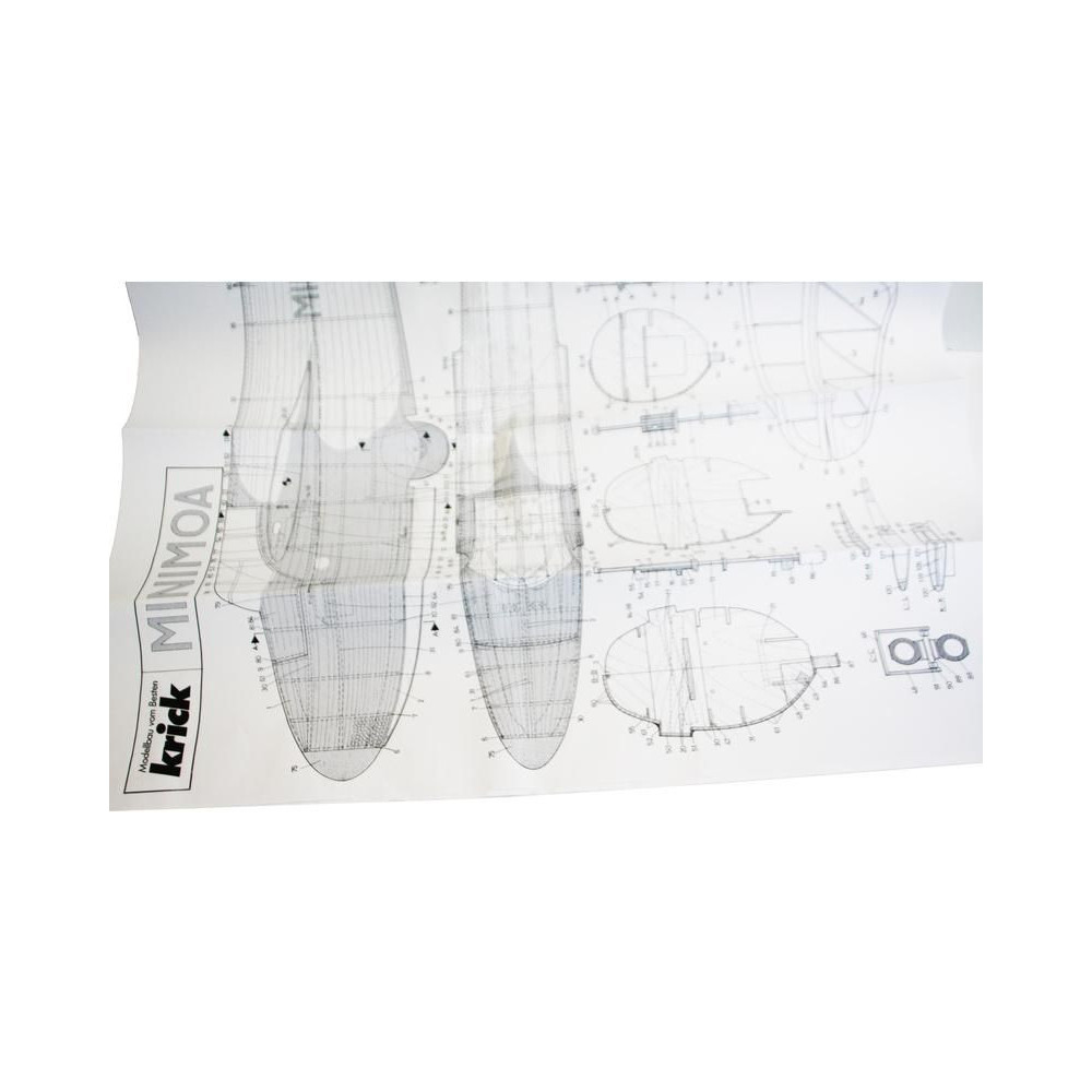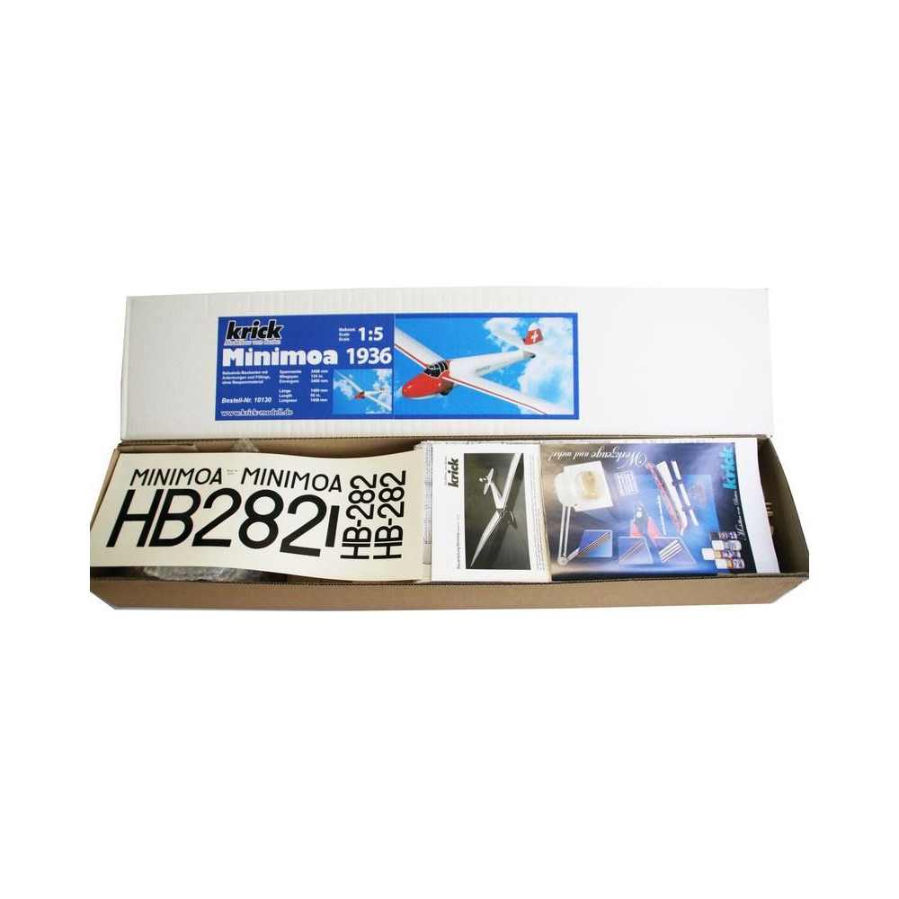 1:5 méretarányú modellépítő készlet a Krick legendás Minimoa 1936-os vitorlázórepülőgépéről, amelynek szárnyfesztávolsága 3,4m. A teljes egészében fából készült építőmodell pontosan méretarányos, a bordák méretei és távolsága megegyezik az eredetivel. A készlet tartalmazza a modell megépítéséhez szükséges összes balzából vagy rétegelt lemezből készült fa alkatrészt, valamint apró kiegészítőket.