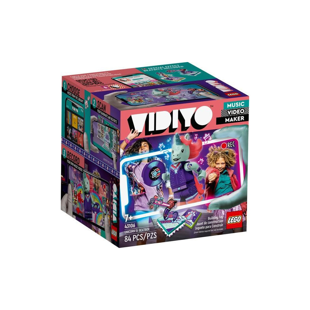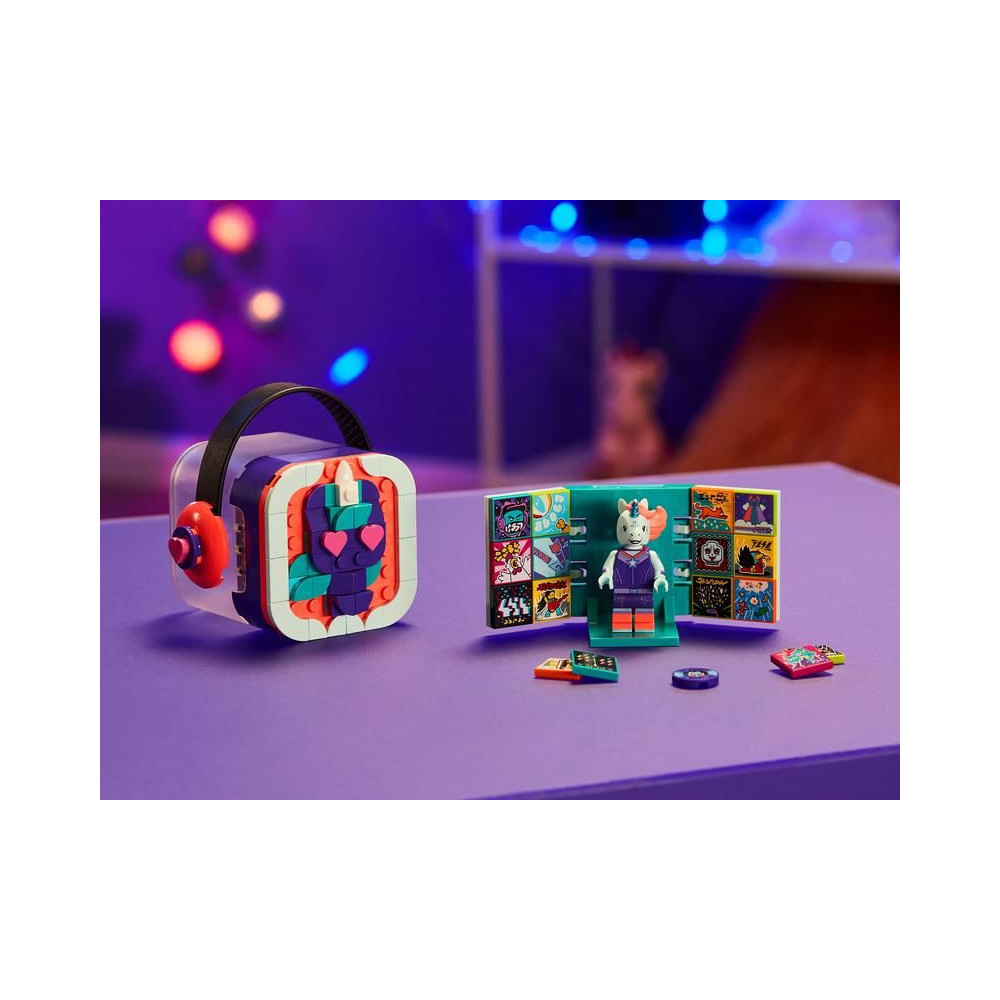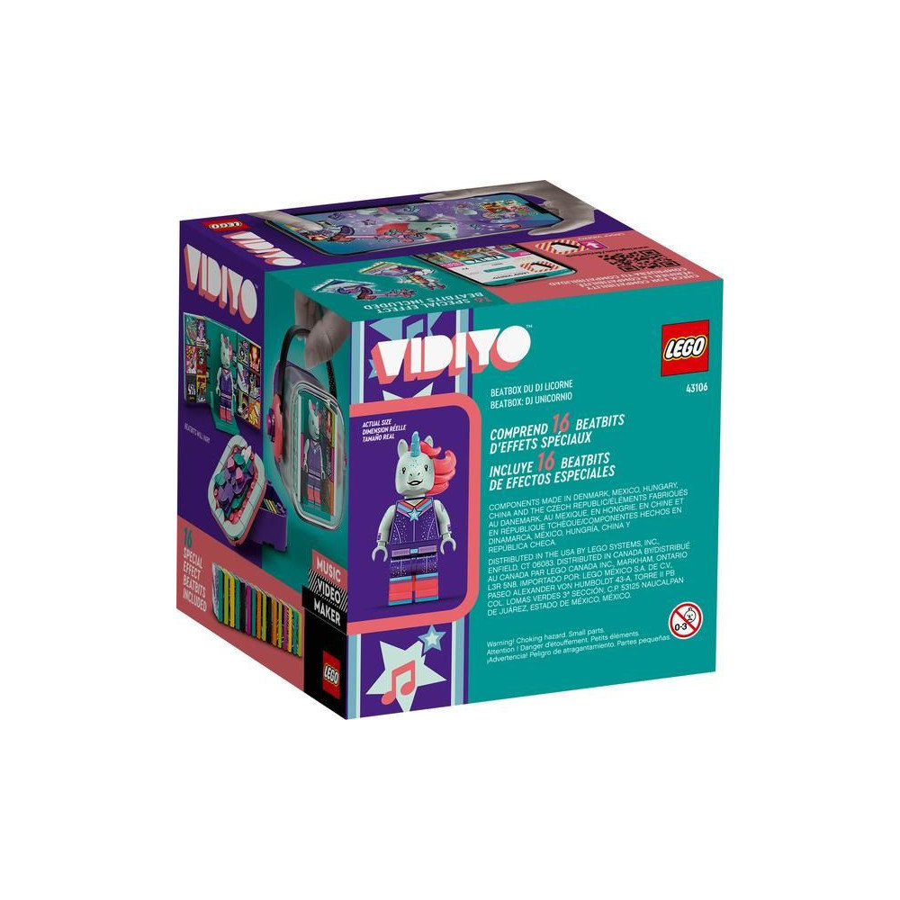 - Inspiráld a gyerekeket saját zenei videók készítésére a LEGO® VIDIYO™ Unicorn DJ BeatBox (43106) segítségével. A BeatBox tartalmaz egy egyszarvú minifigurát DJ felszereléssel és 16 BeatBitet - 14 véletlenszerűt és 2 egyedit a figurához.