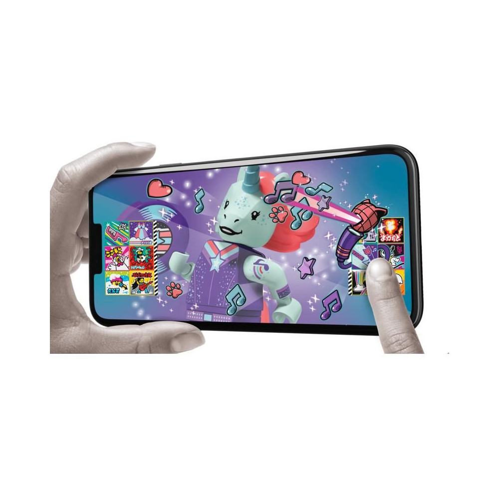 Lépj be a zenei videók és a zenei sztárok világába. A LEGO® VIDIYO™ Unicorn DJ BeatBox készlet izgalmas játékélményt nyújt. Töltsd le az alkalmazást, szkenneld be az egyszarvú minifigurát, és adj egy fantasztikus DJ show-t a színpadon.