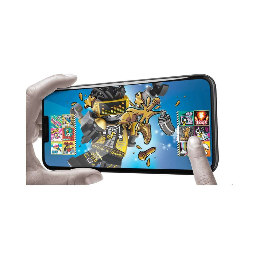 - Töltsd le az ingyenes LEGO® VIDIYO™ alkalmazást, és szkenneld be a minifigurát és a BeatBits-et speciális effektekkel. A gyerekek ezután izgatottan nézhetik, ahogy a karakterük életre kel a saját hip-hop zenei videóikban.