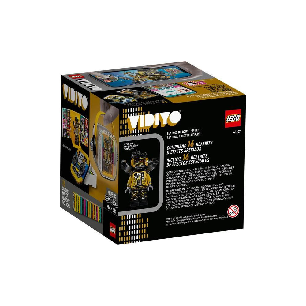 - Inspiráld a gyerekeket saját zenei videók készítésére a LEGO® VIDIYO™ HipHop Robot BeatBox (43107) segítségével. A BeatBox egy minifigurás robotot tartalmaz mikrofonnal és 16 BeatBittel - 14 véletlenszerű és 2 egyedi, a figurához tartozó BeatBitet.