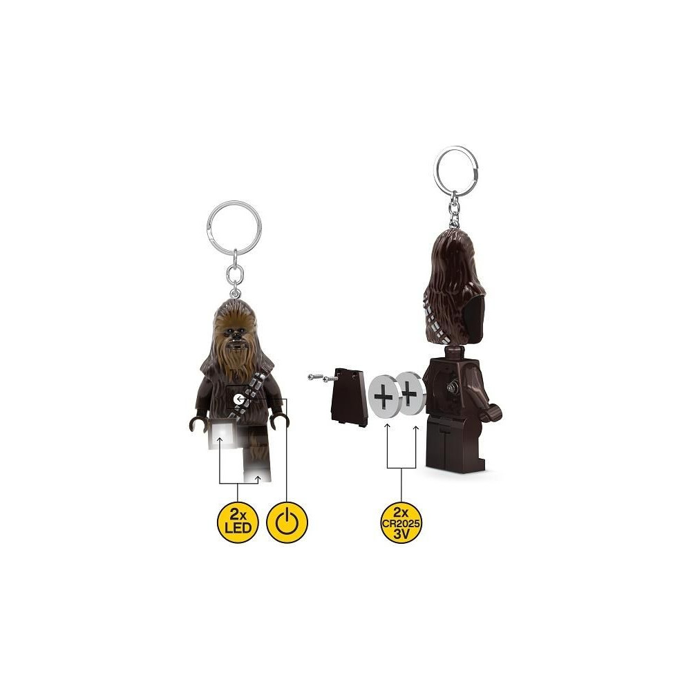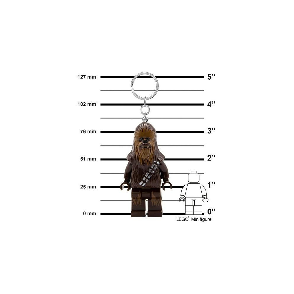 Star Wars Chewbacca LED-es világító hátizsák vagy kulcstartó. A mellkasukon gombot és lábukban LED-et tartalmazó gyűjtögethető LEGO figurák nem hiányozhatnak a LEGO figuragyűjteményedből! A figura 7,5 cm magas, és mozgatható karokkal és lábakkal rendelkezik. Elemeket tartalmaz. Ajánlott életkor: 6+
