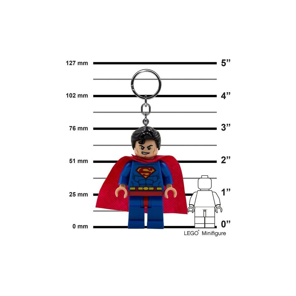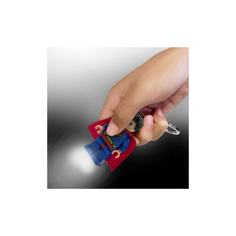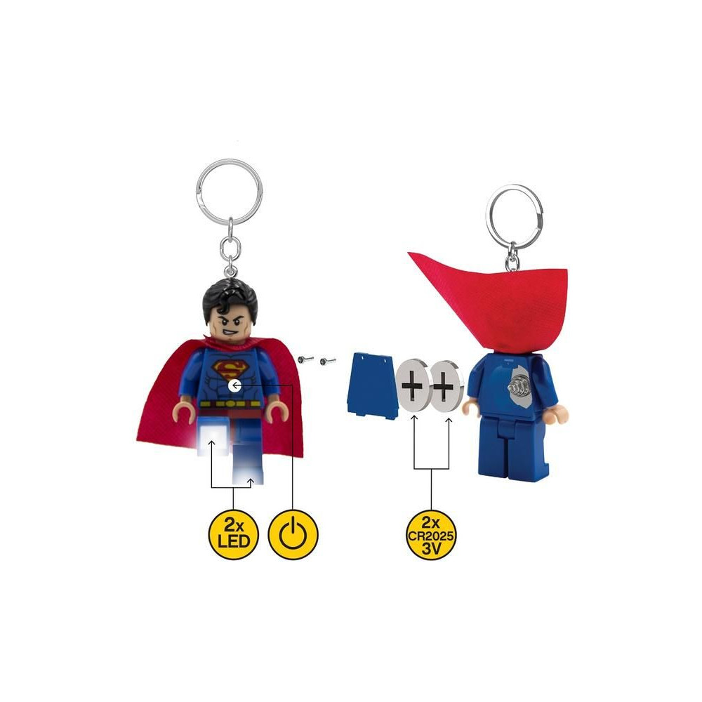 Superman LED-es világító hátizsákként vagy kulcstartóként. A LEGO figurák mellkasán gombbal és lábában LED-ekkel ellátott gyűjtőfigurák nem hiányozhatnak a LEGO figuragyűjteményedből! A figura 7,5 cm magas, és mozgatható karokkal és lábakkal rendelkezik. Elemeket tartalmaz. Ajánlott életkor: 6+.