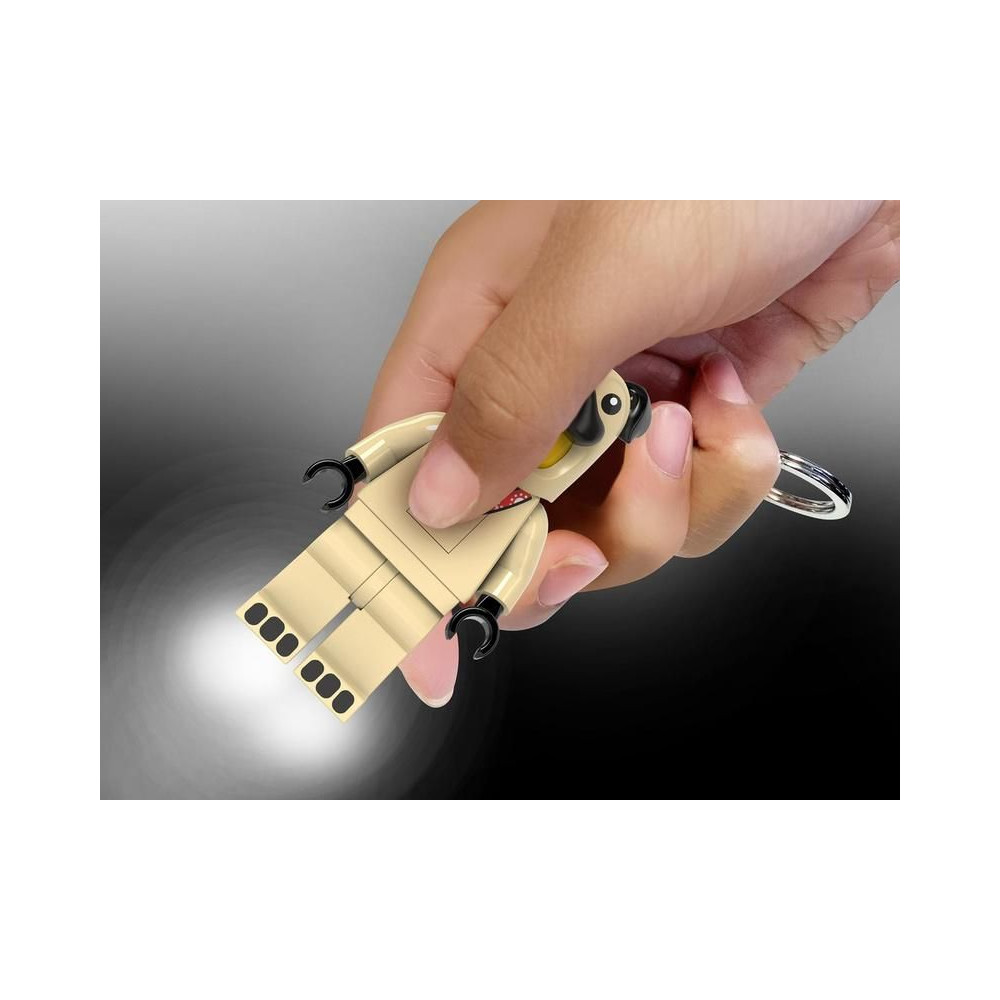 - LED világítás: A karakter mellkasán található gomb megnyomásával aktiválható egy erős LED lámpa, amely ideális kulcslyuk megvilágításához vagy tárgyak kereséséhez sötétben.
